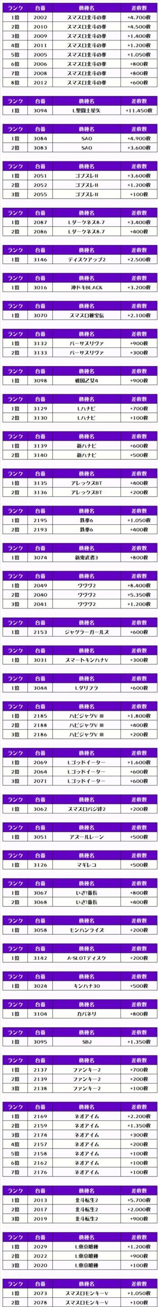 そして、全体の差枚ランキングはコチラっ📷