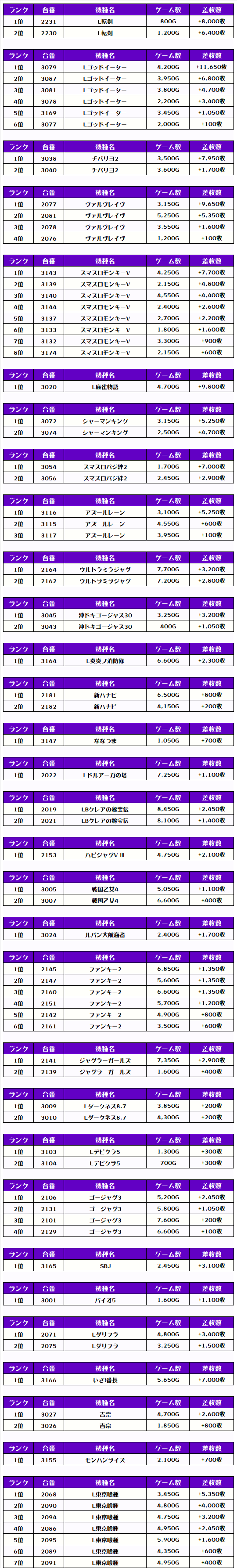 それでは、この日の【機種別差枚ランキング】を見ていきましょう❗️