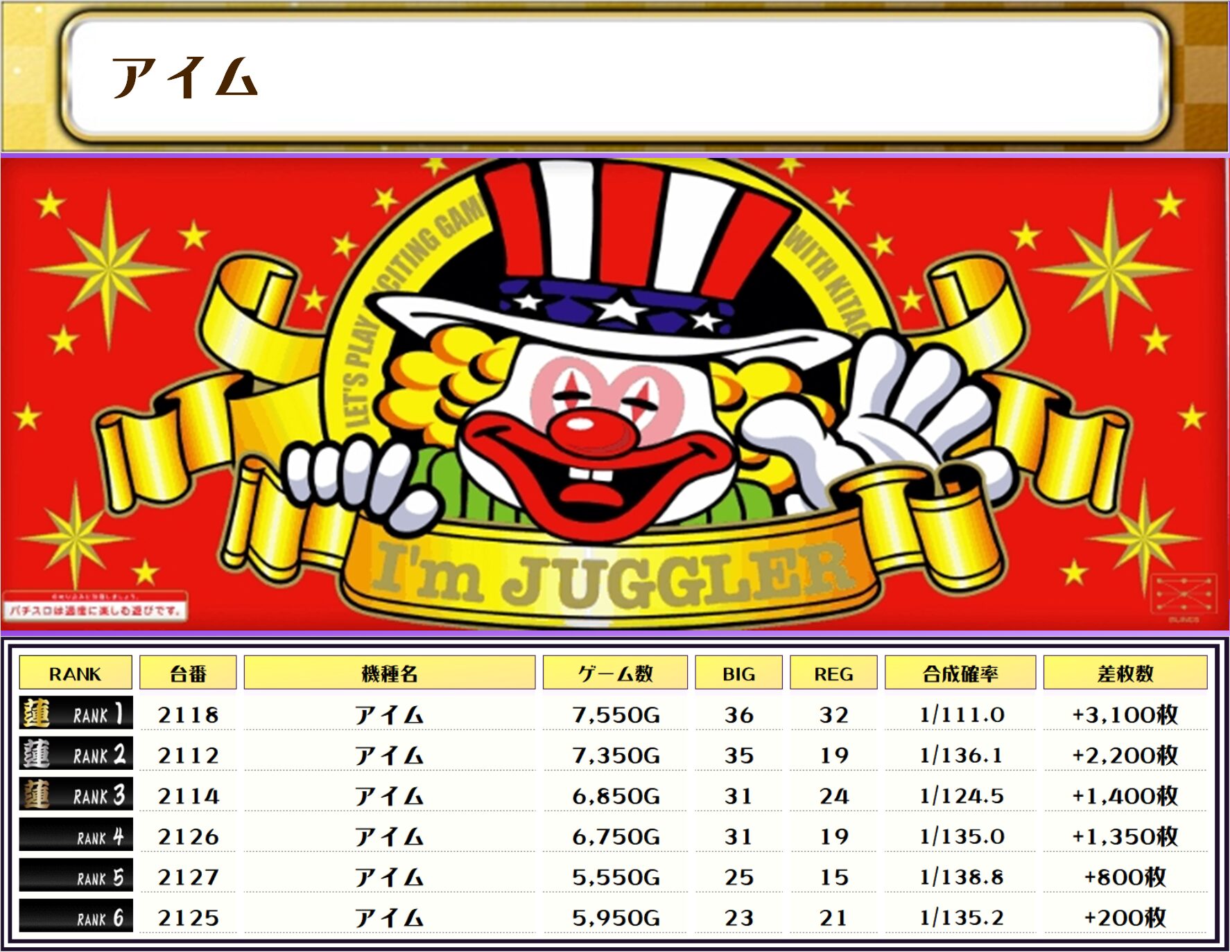 そして、全体の差枚ランキングはコチラっ📷