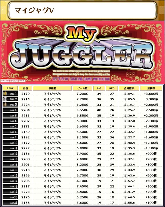 それでは、この日の【機種別差枚ランキング】を見ていきましょう❗️
