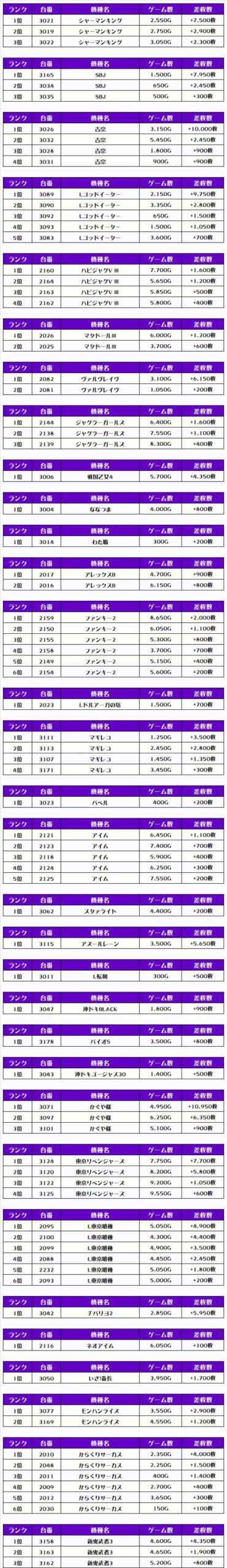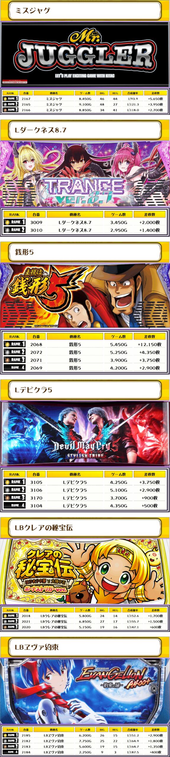 あと、銭形5・Lデビクラ5・LBクレアの秘宝伝・LBヱヴァ約束は優秀台の数が多くて、Lデビクラ5には3台並びで優秀台があったみたいっ