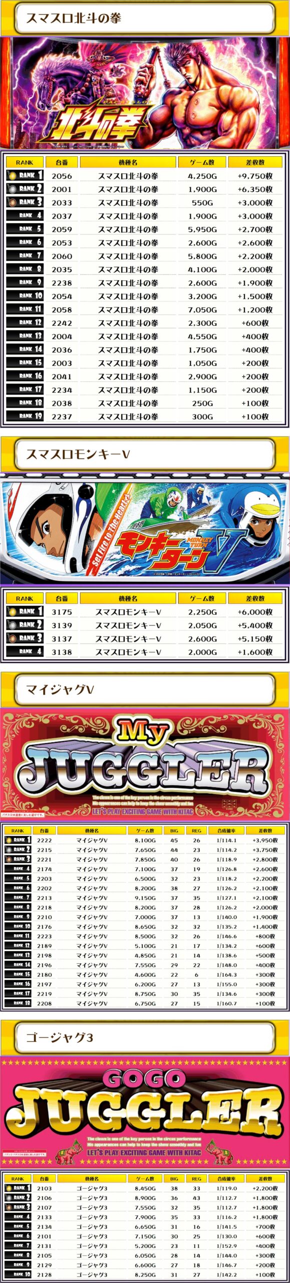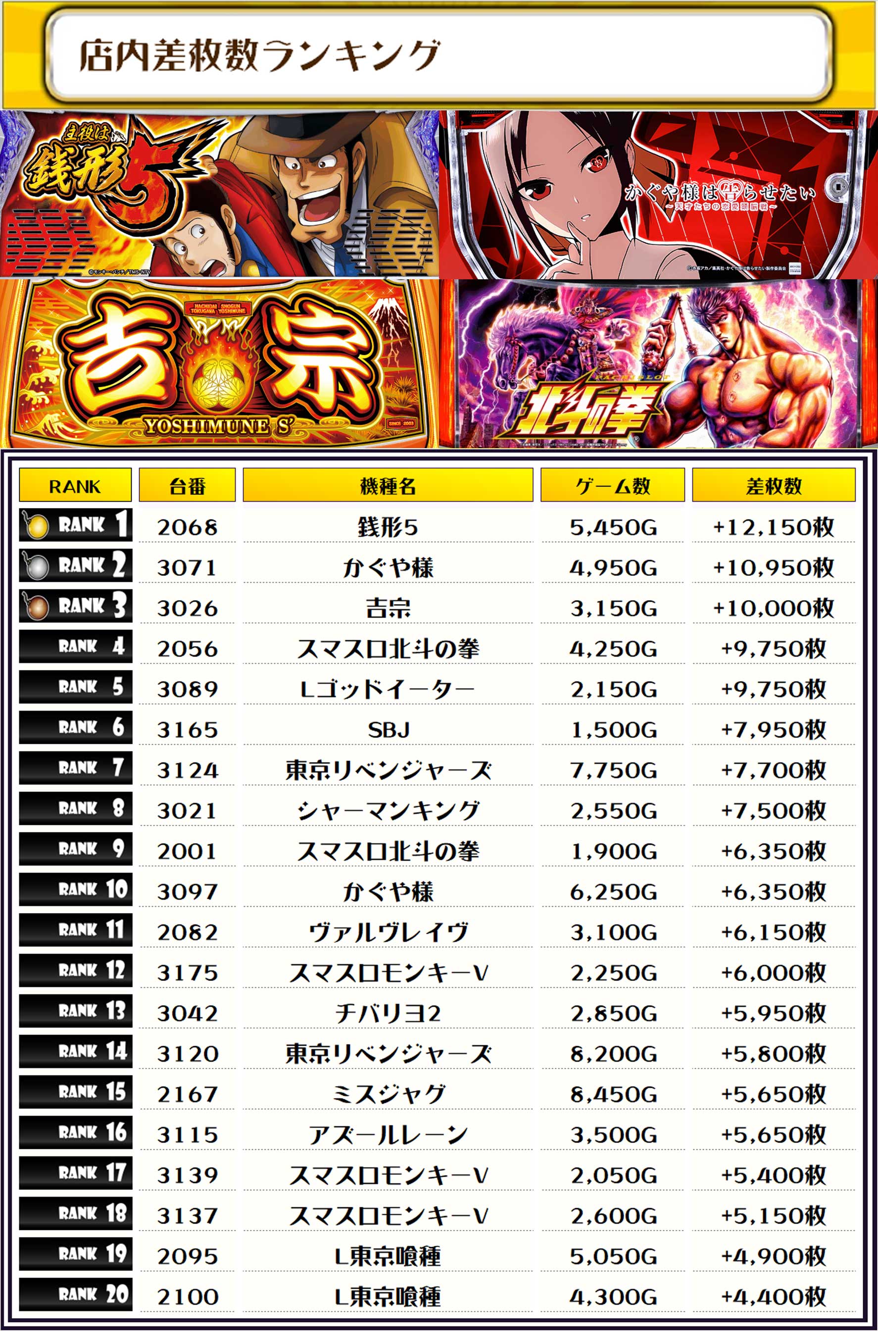 それでは、この日の【機種別差枚ランキング】を見ていくぜっ❗️