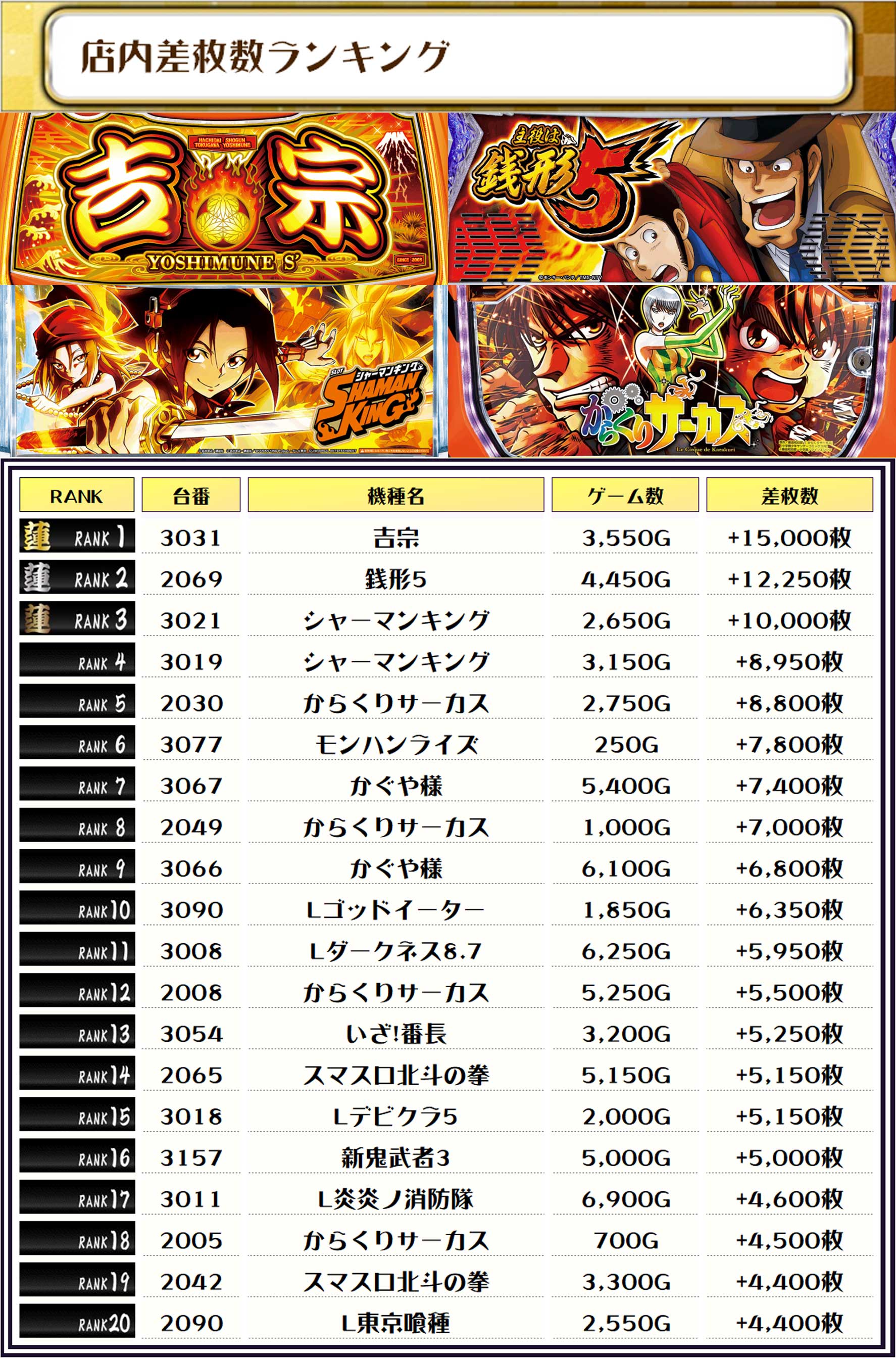 2位には【銭形5・2069番台】の+12,250枚、そして3位には【シャーマンキング・3021番台】の+10,000枚がランクインっ🏆🏆🏆🏆