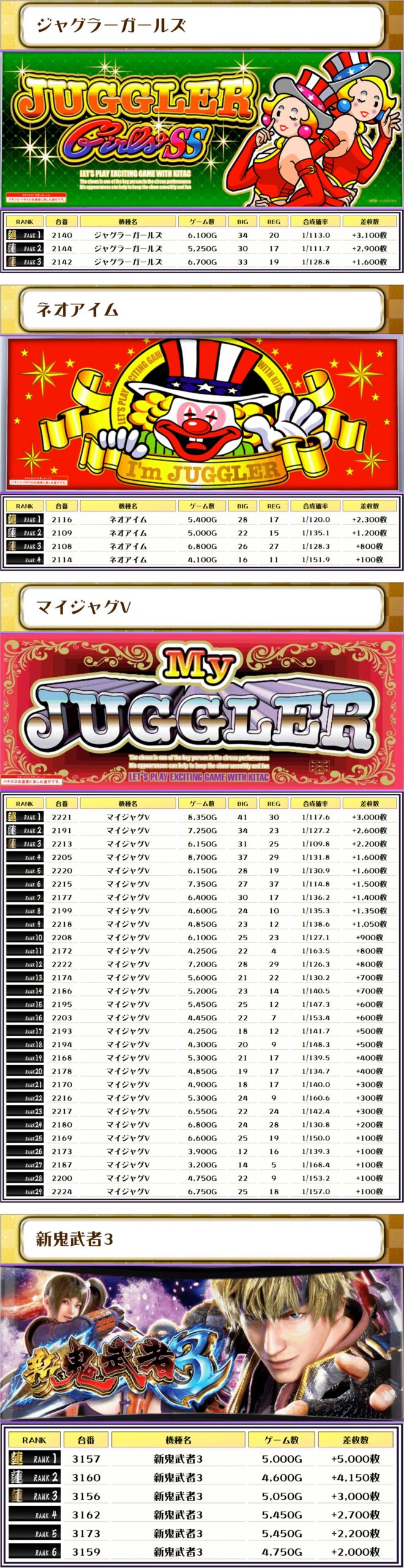 それでは、この日の【機種別差枚ランキング】を見ていきましょう❗️
