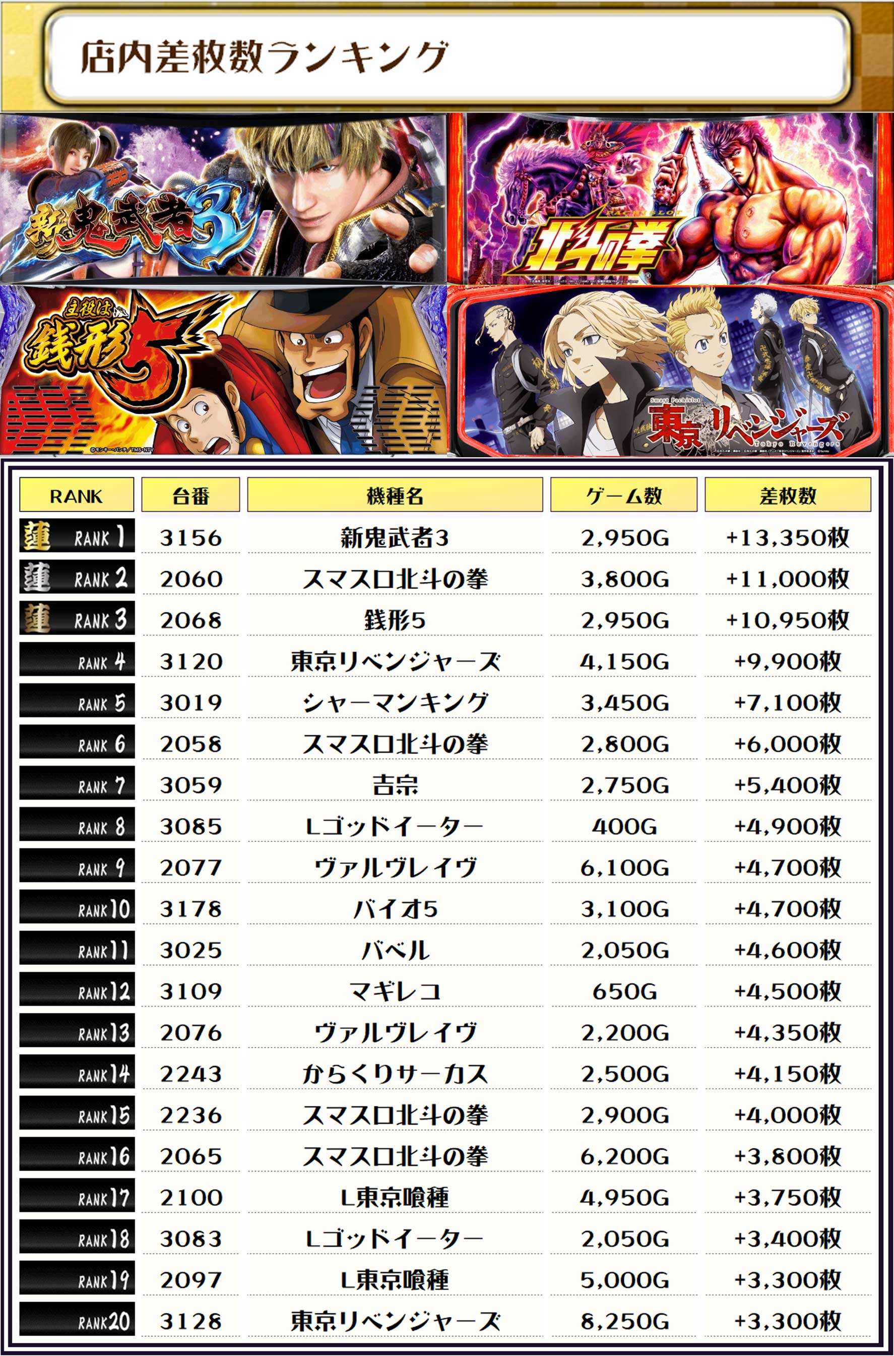 2位には【スマスロ北斗の拳・2060番台】の+11,000枚、そして3位には【銭形5・2068番台】の+10,950枚がランクインっ🏆🏆🏆🏆