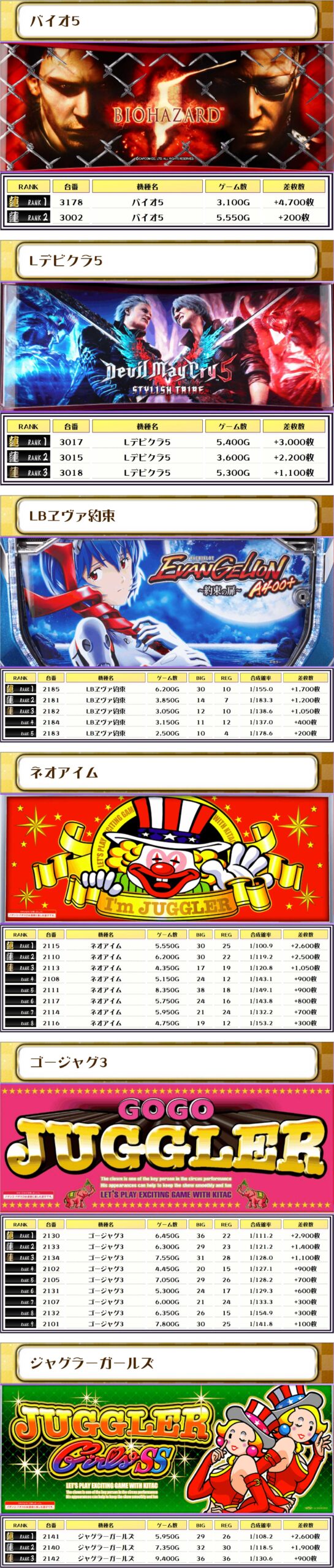 バイオ5・Lデビクラ5・ネオアイム・ゴージャグ3・ジャグラーガールズ・LBエヴァ約束は稼働的にそうだと思うぞ🎤