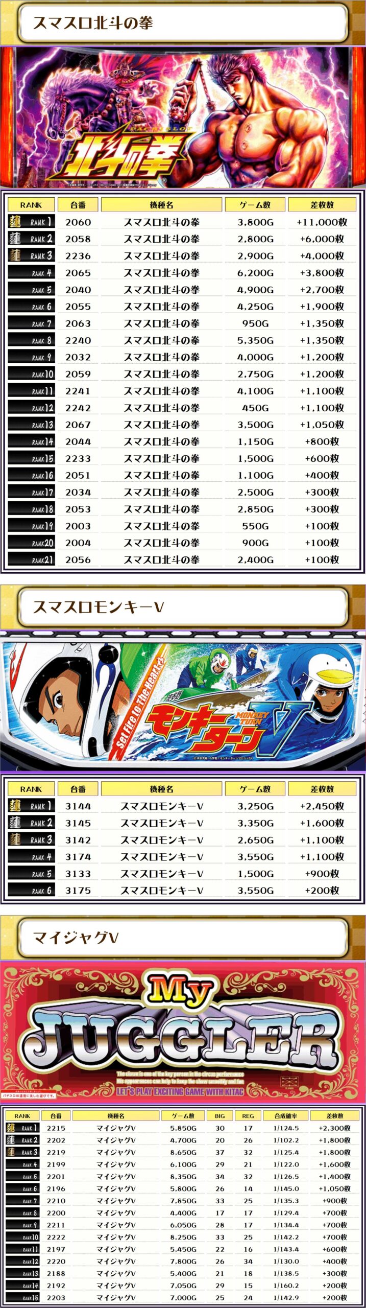 それでは、この日の【機種別差枚ランキング】を見ていきましょう❗️