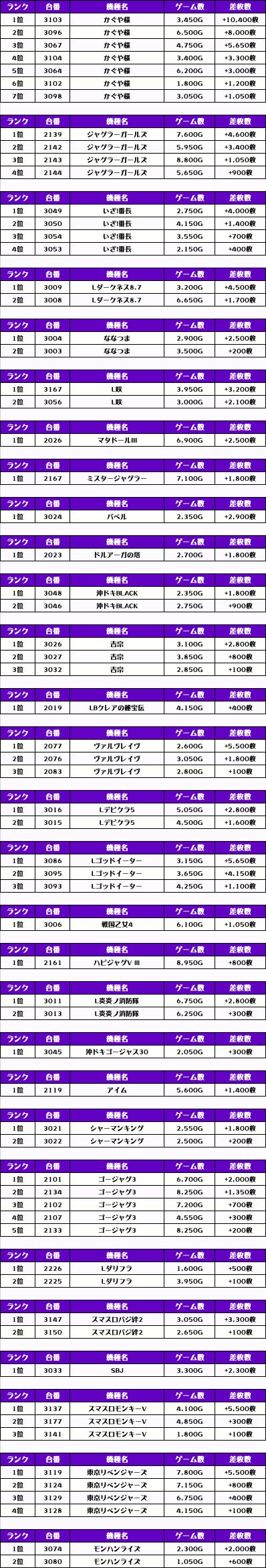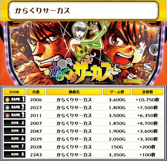 それでは、この日の【機種別差枚ランキング】を見ていくぜっ❗️