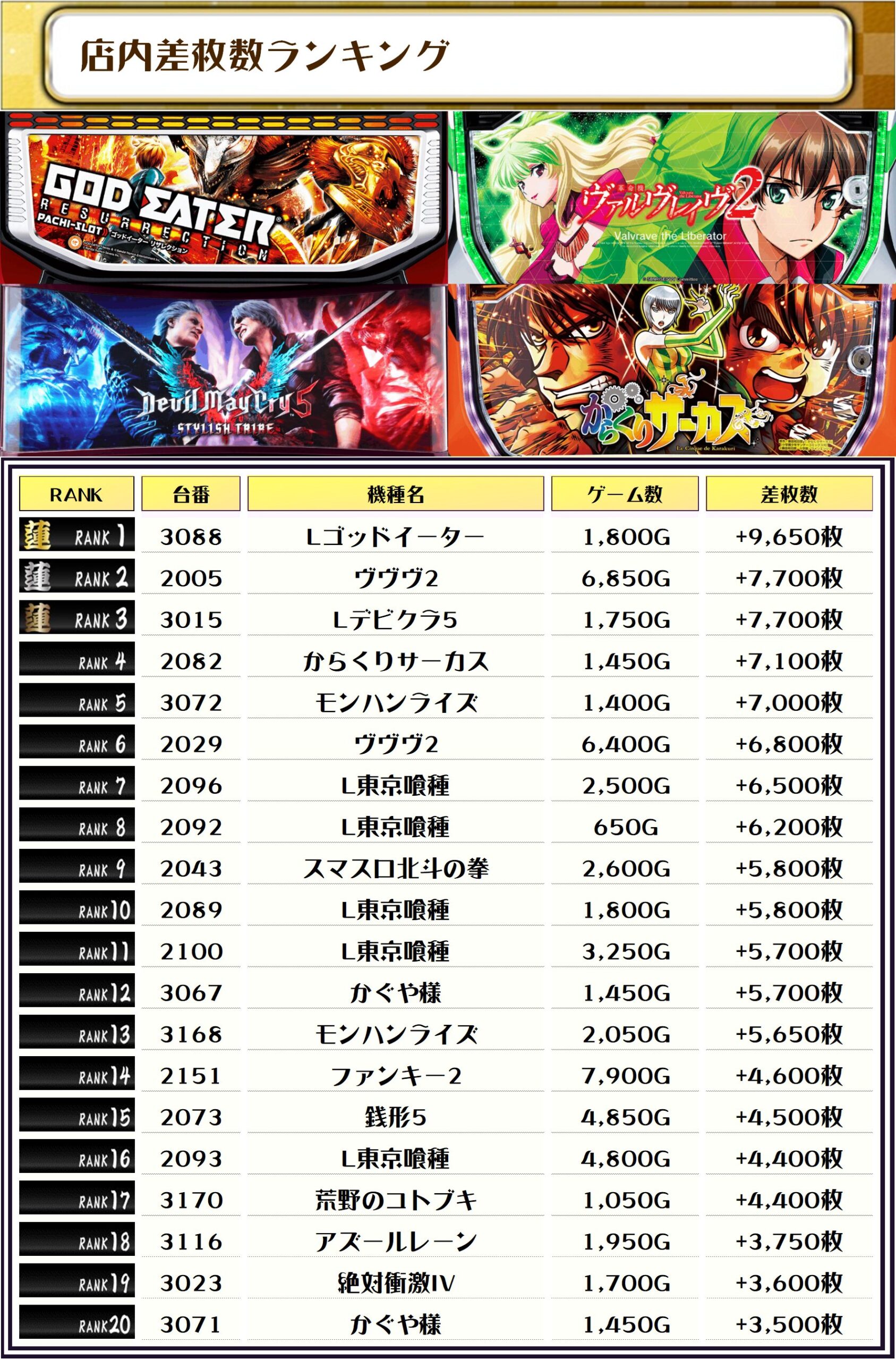 それでは、この日の【機種別差枚ランキング】を見ていきましょう❗️