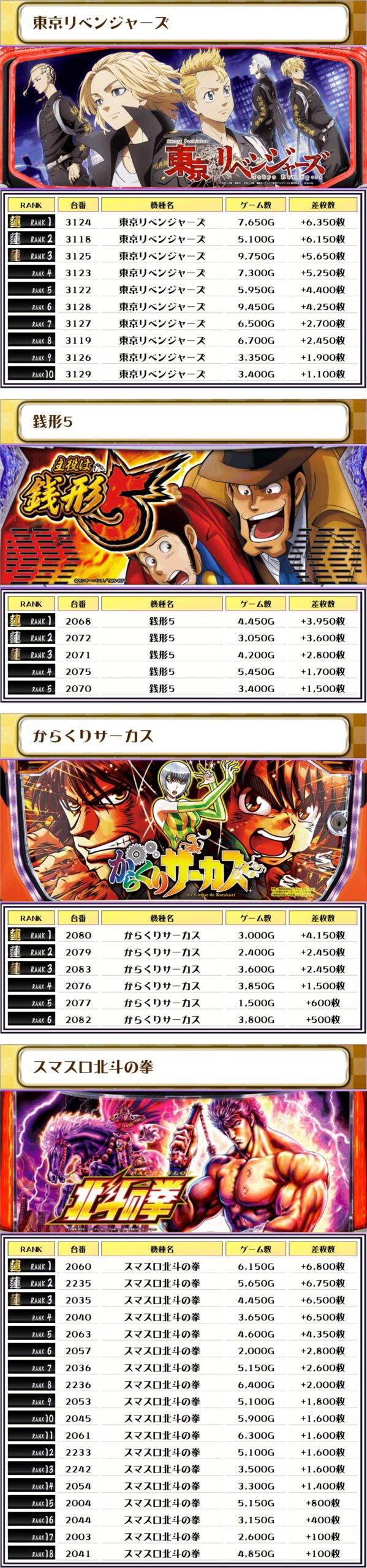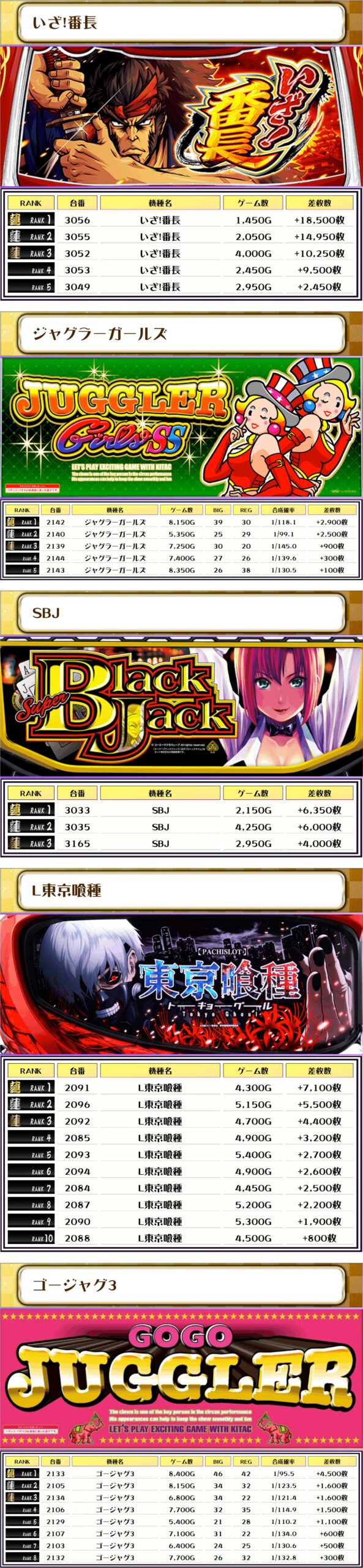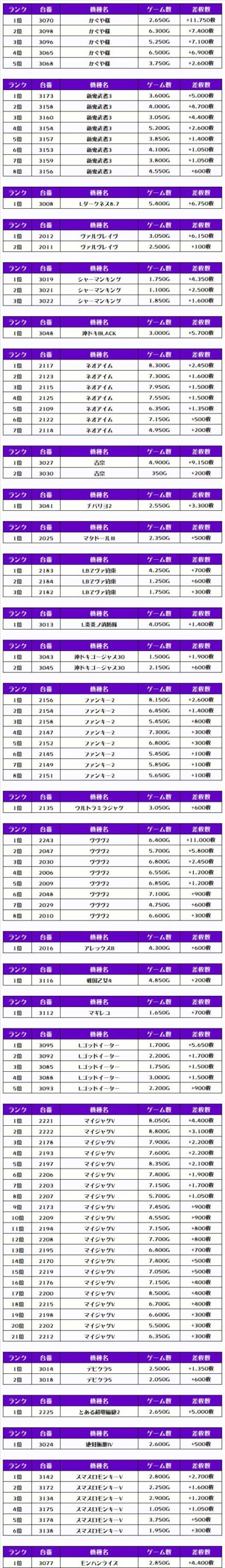 そして、ピックアップしたのは、高稼働+優秀台が多かったと思われる機種たち👍