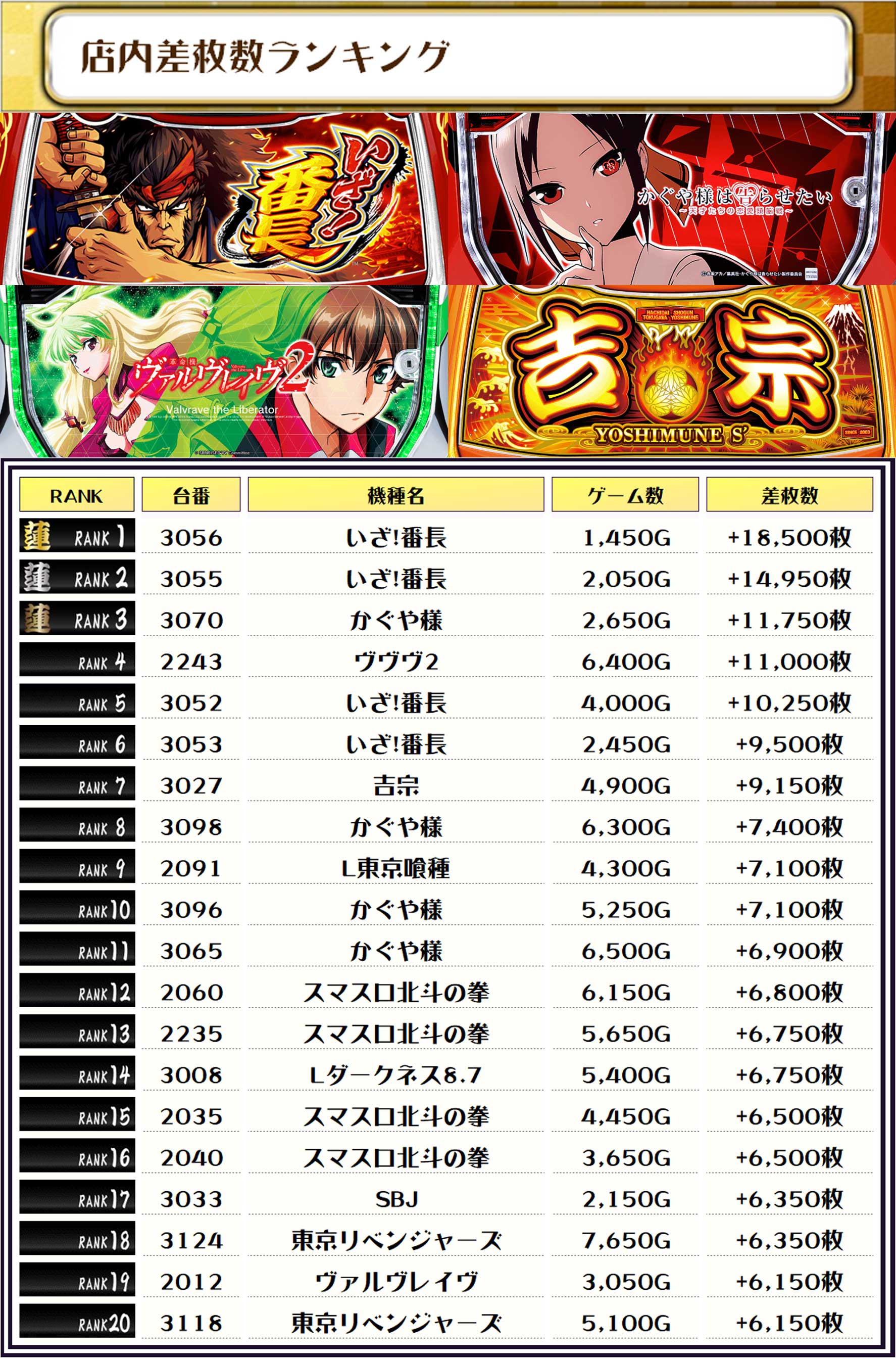 2位には【いざ!番長・3055番台】の+14,950枚、そして3位には【かぐや様・3070番台】の+11,750枚がランクインっ🏆🏆🏆🏆