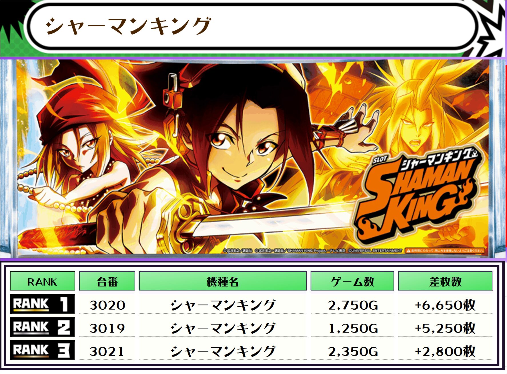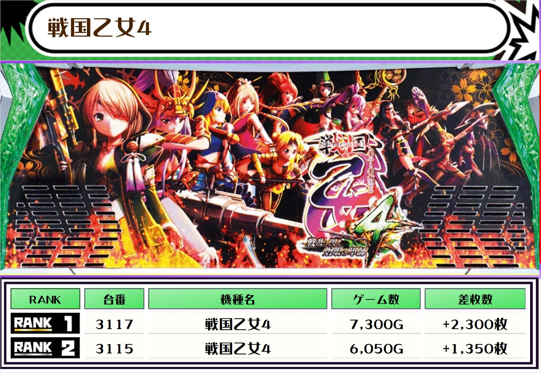 シャーマンキング・戦国乙女4は半数以上が差枚プラスでしたね✨️