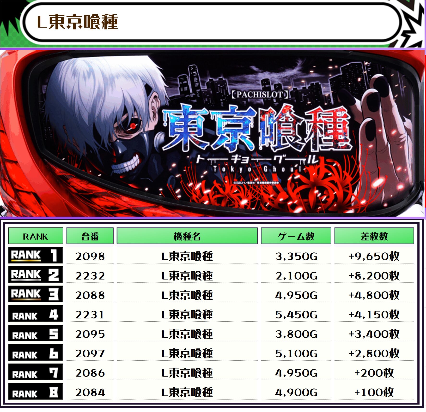 2位には【L東京喰種・2098番台】の+9,650枚、そして3位には【バイオ5・3150番台】の+9,650枚がランクインっ🏆🏆🏆