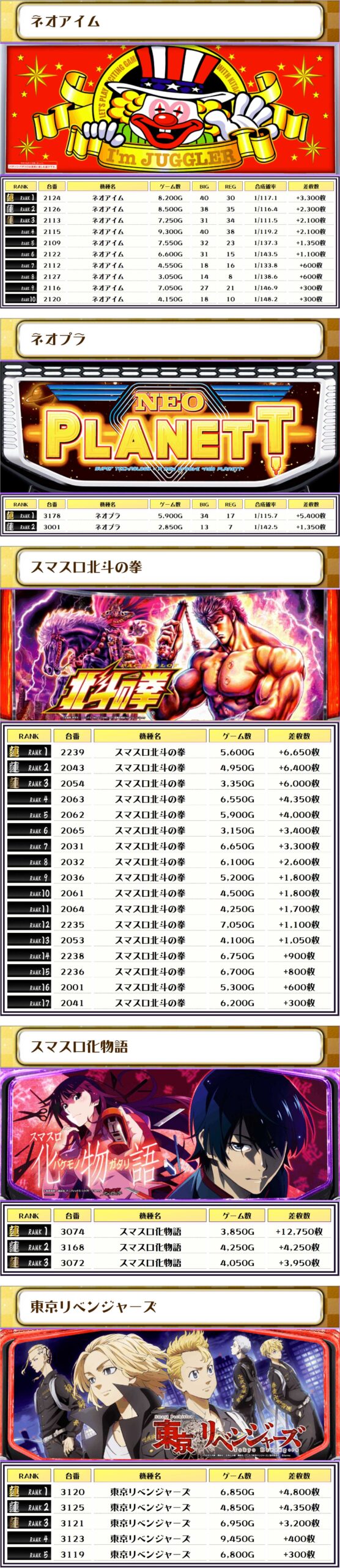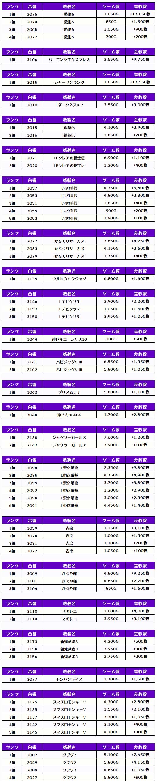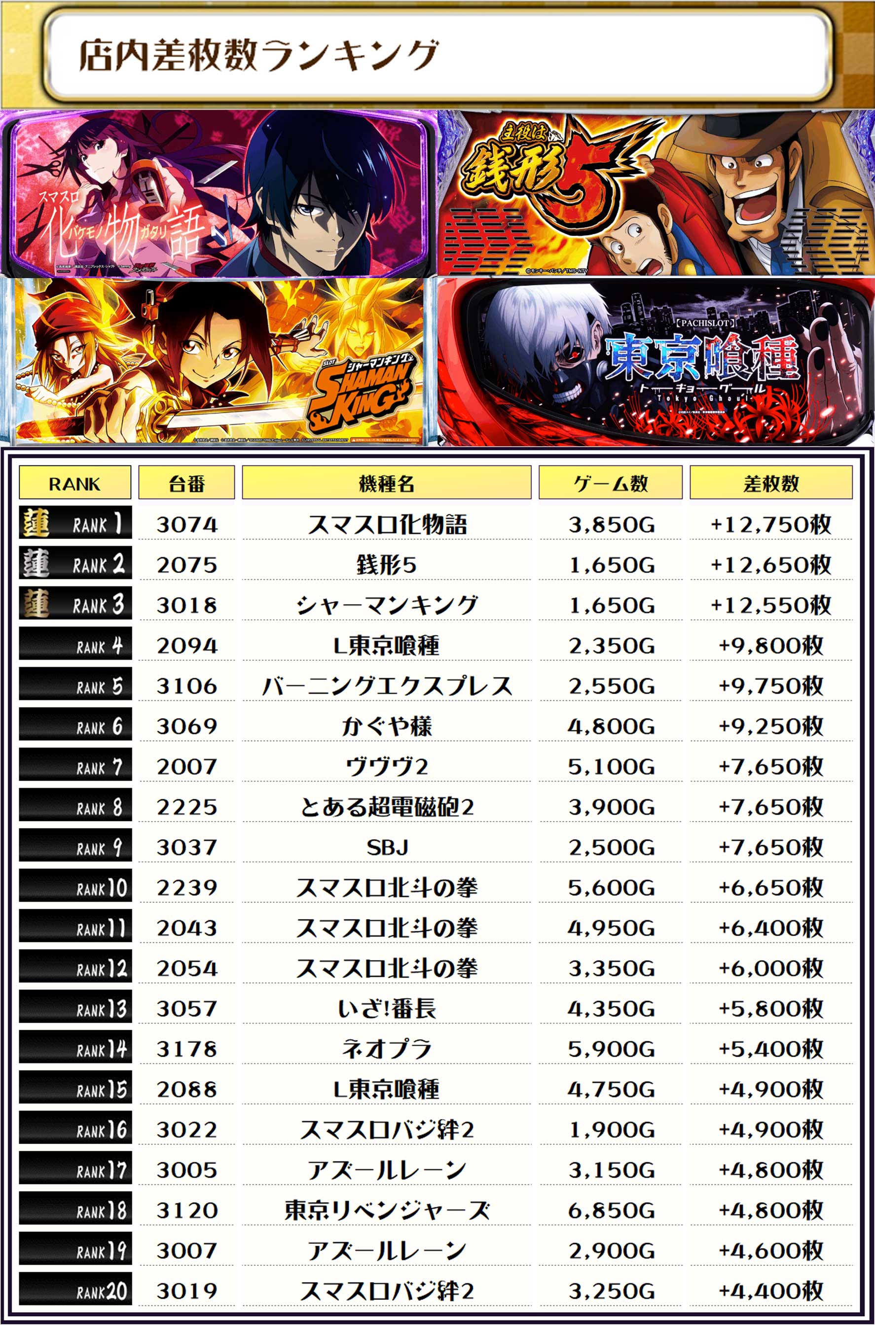 それでは、この日の【機種別差枚ランキング】を見ていきましょう❗️