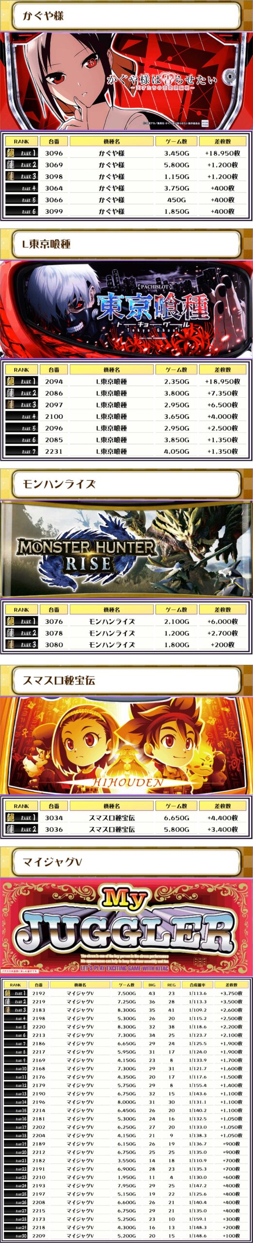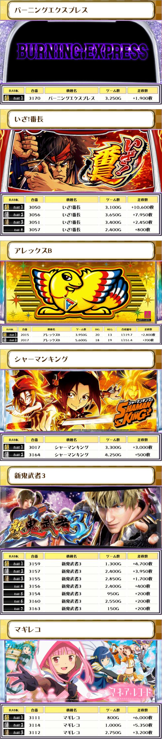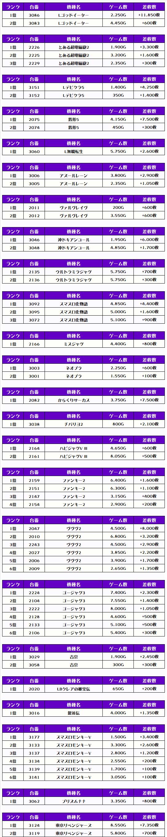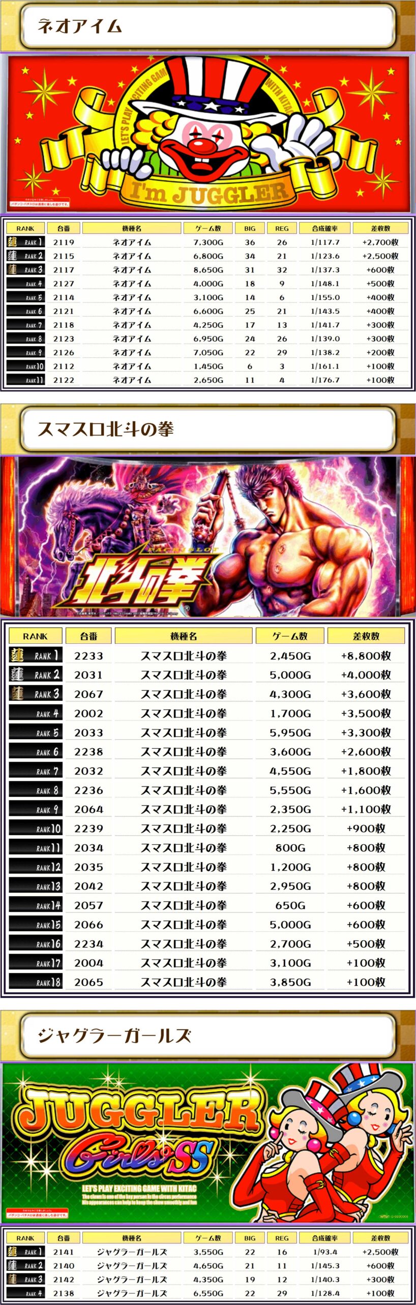 それでは、この日の【機種別差枚ランキング】を見ていきましょう❗️