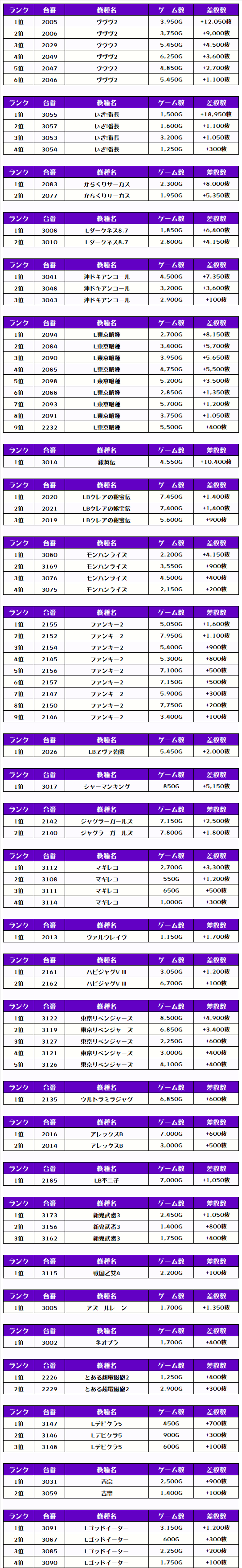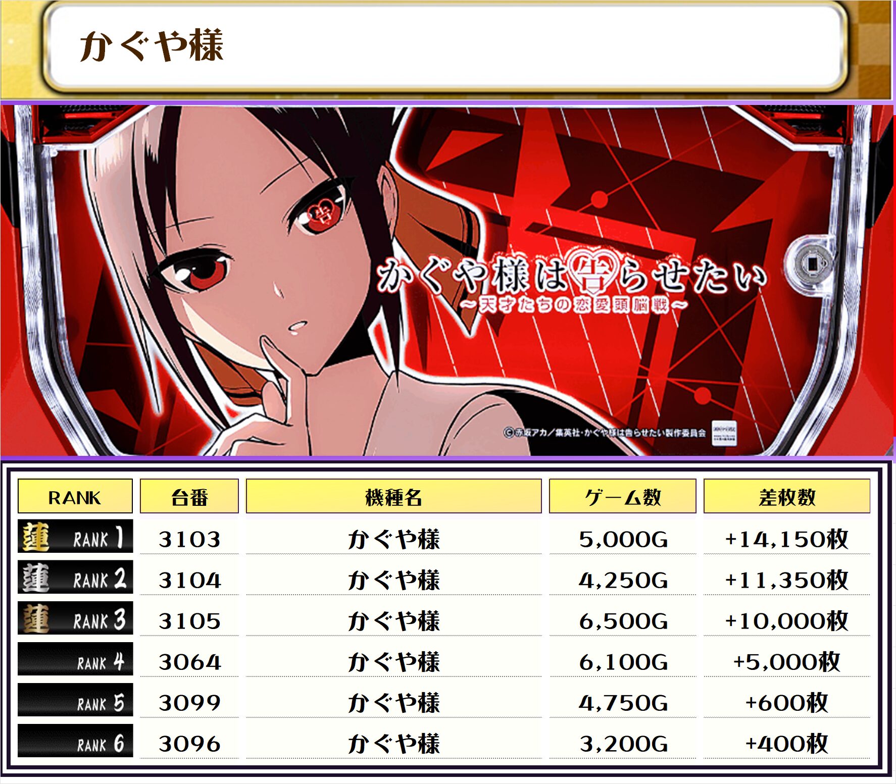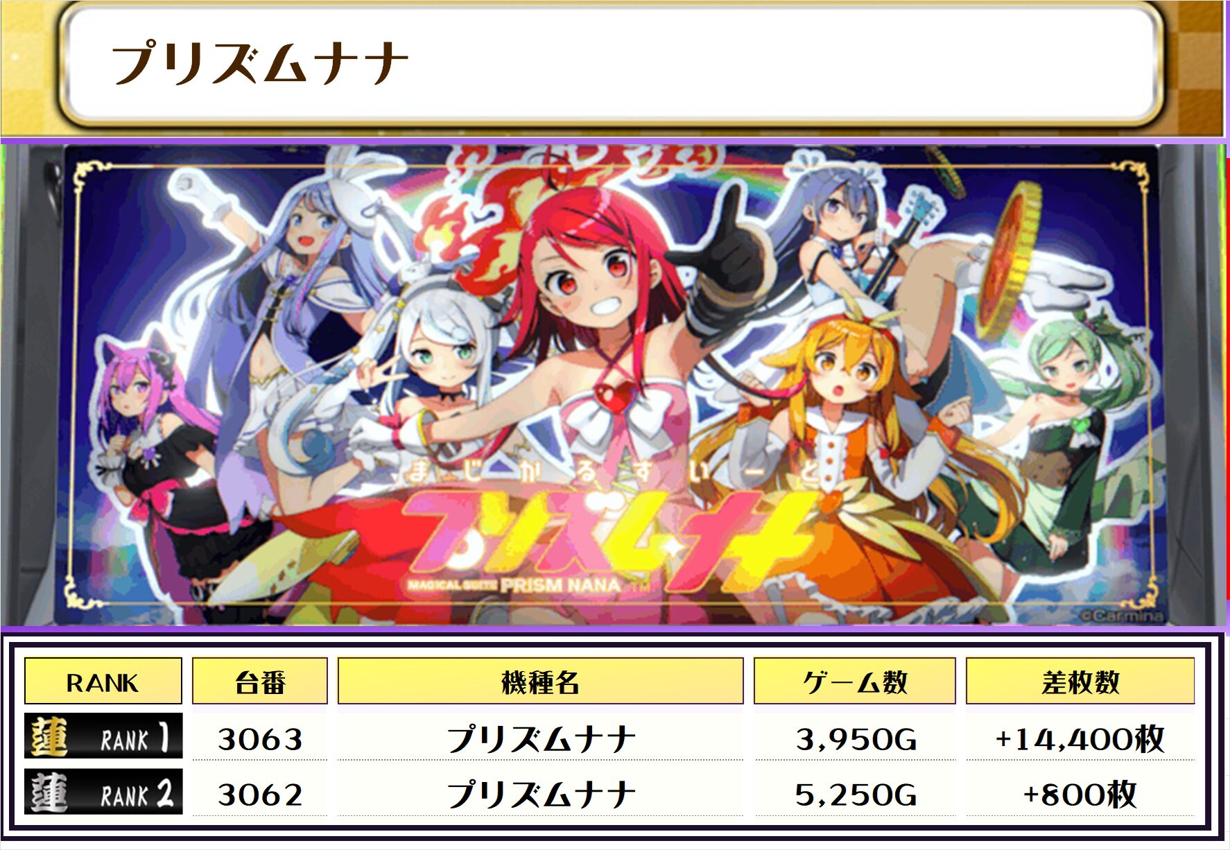 2位には【プリズムナナ・3063番台】の+14,400枚、3位には【かぐや様・3103番台】の+14,150枚がランクインっ🏆🏆🏆🏆