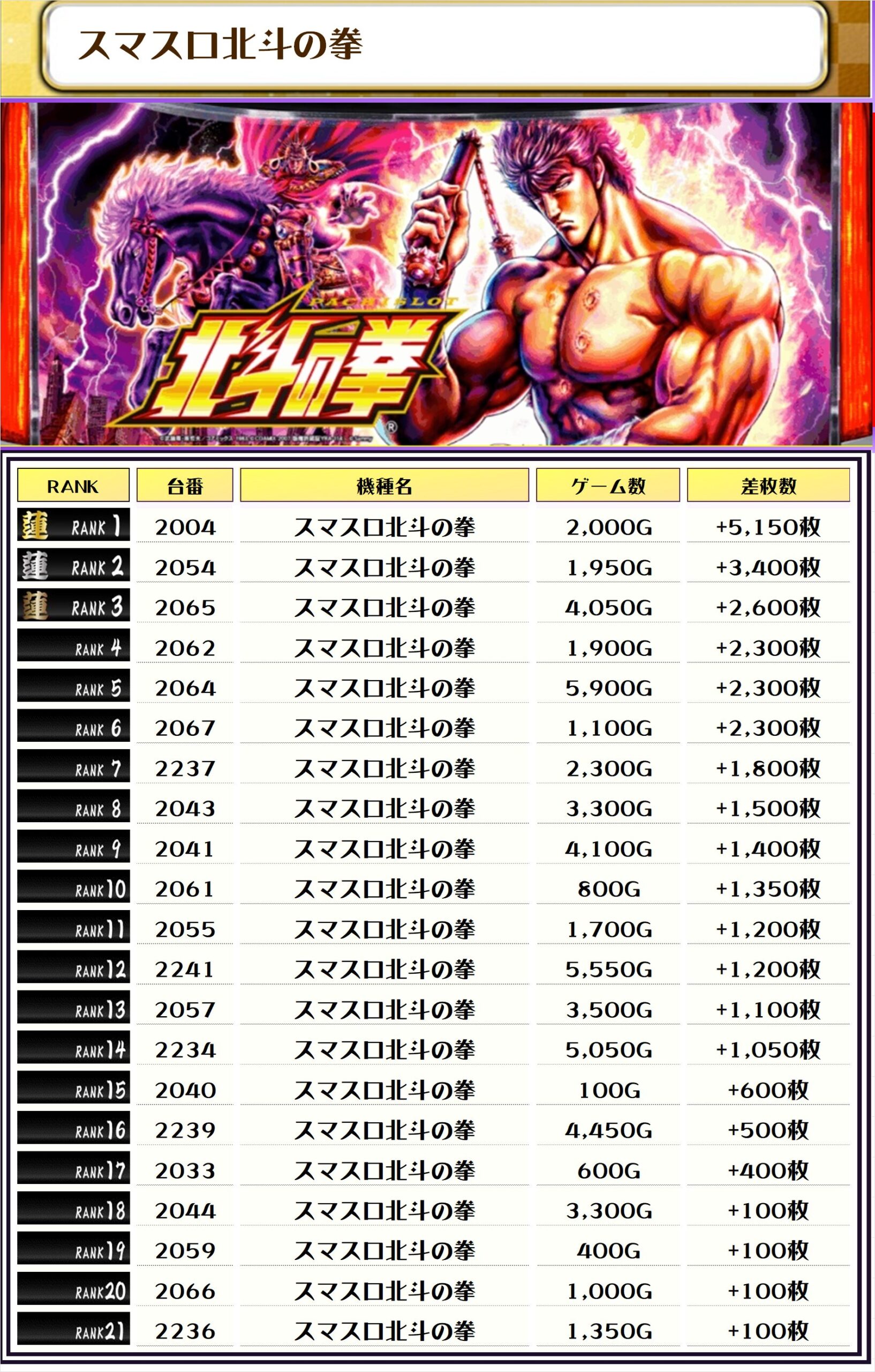 それでは、この日の【機種別差枚ランキング】を見ていきましょう❗️