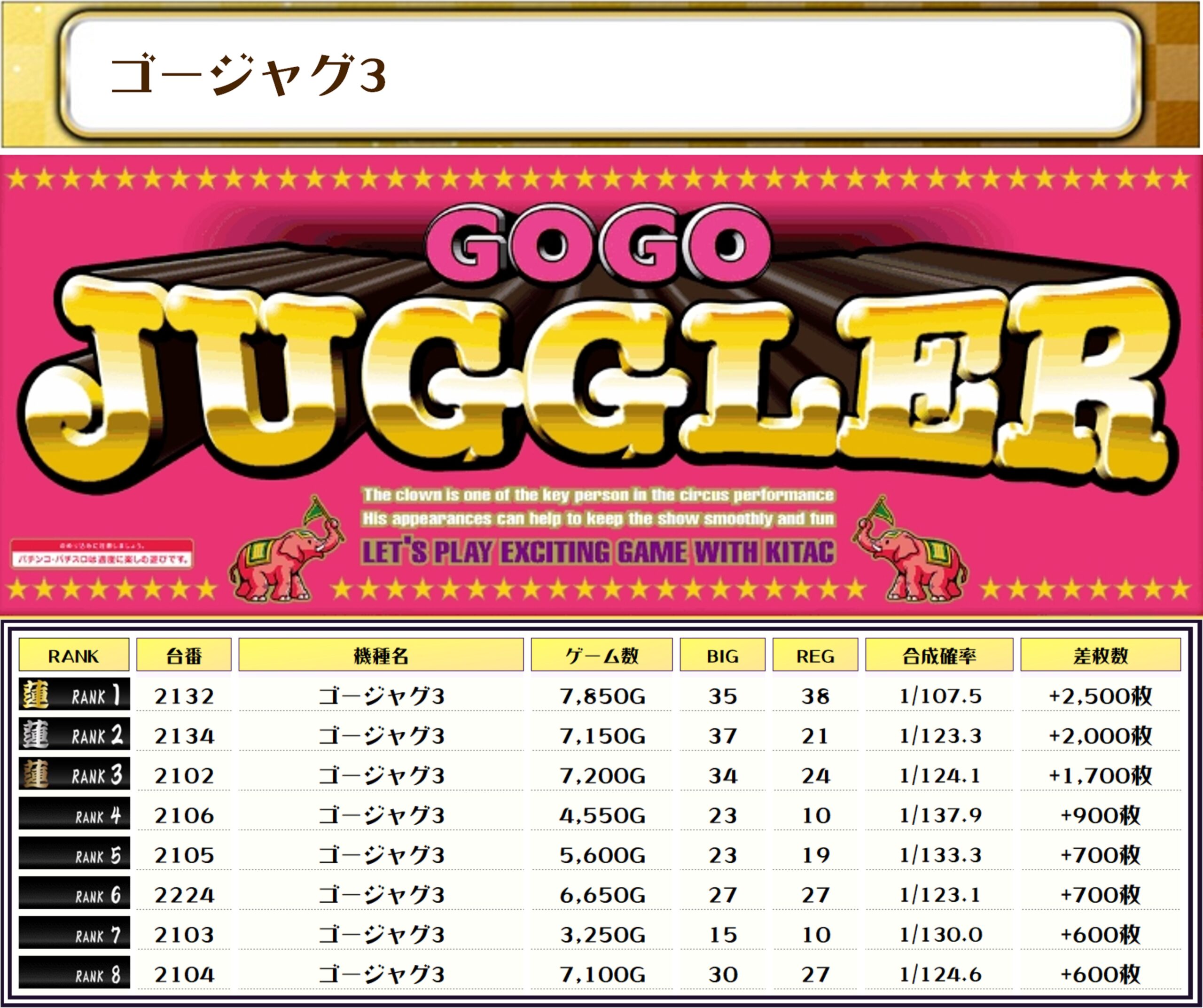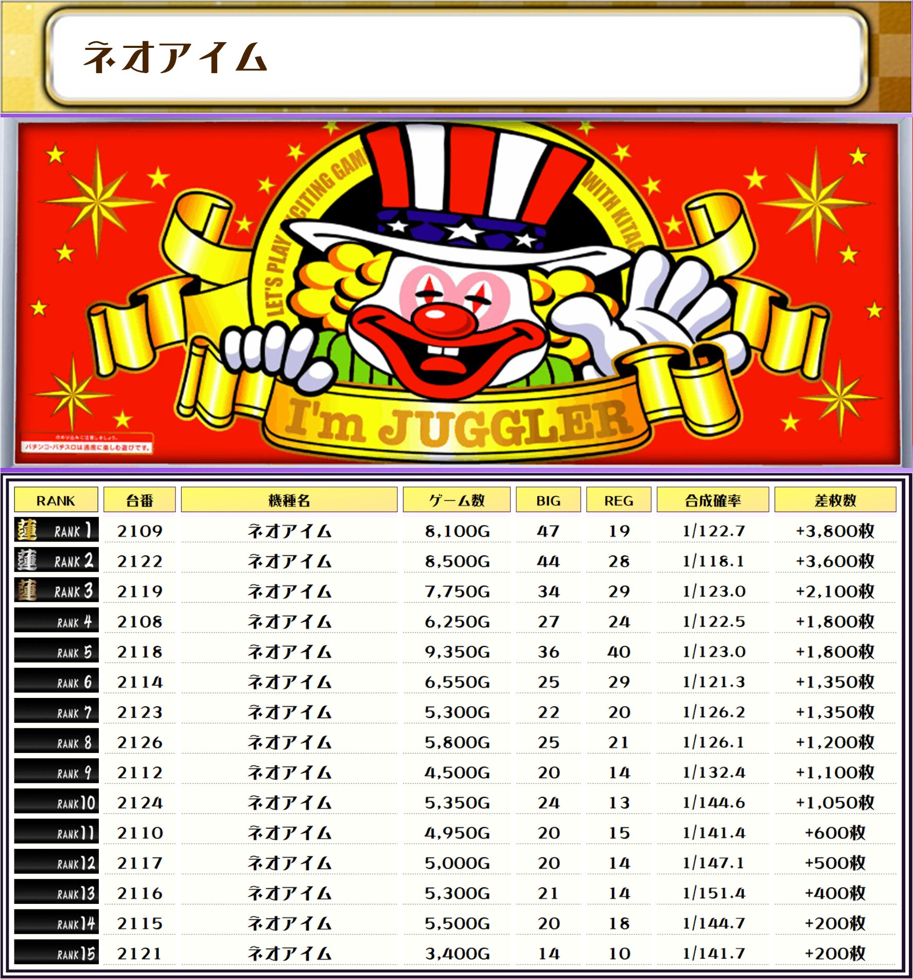 そんな中、ジャグ系も優秀台が多数で、ピックアップしたジャグラーシリーズ4機種は超優秀な結果となりましたよっ👍