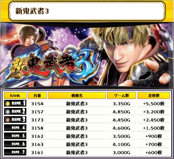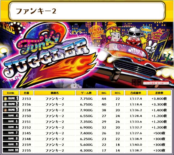 人気台から少数台まで、幅広い機種が上位を占めたな👀