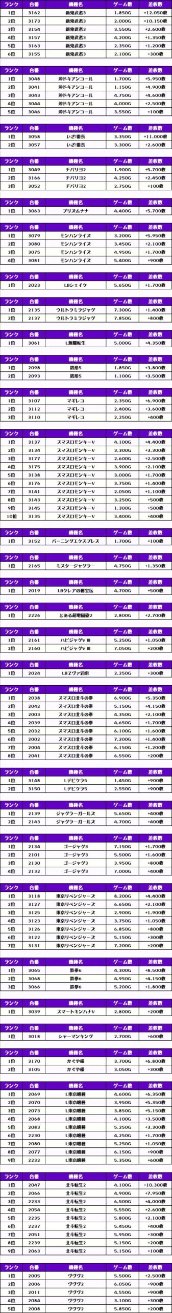 それでは、この日の【機種別差枚ランキング】を見ていきましょう❗️
