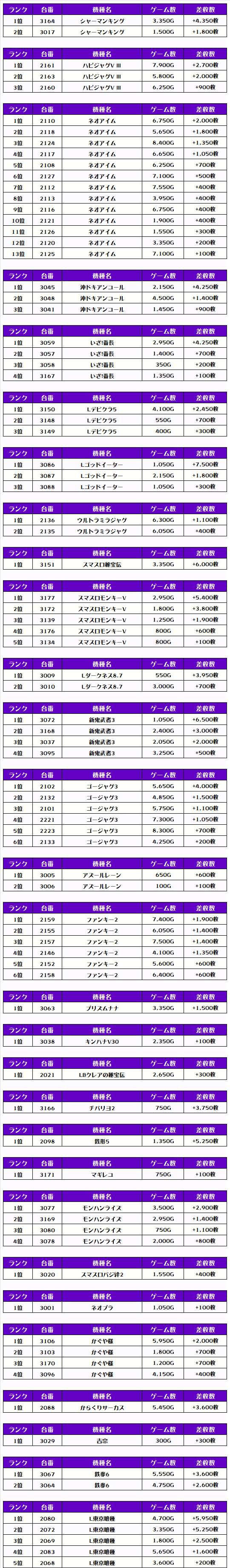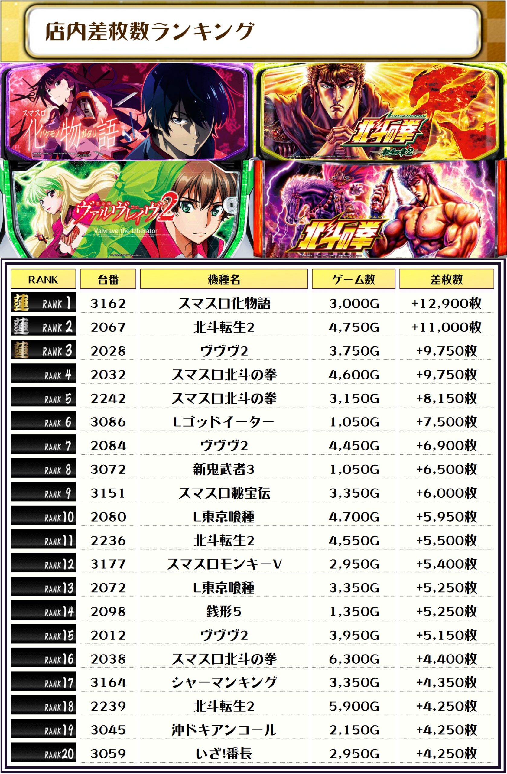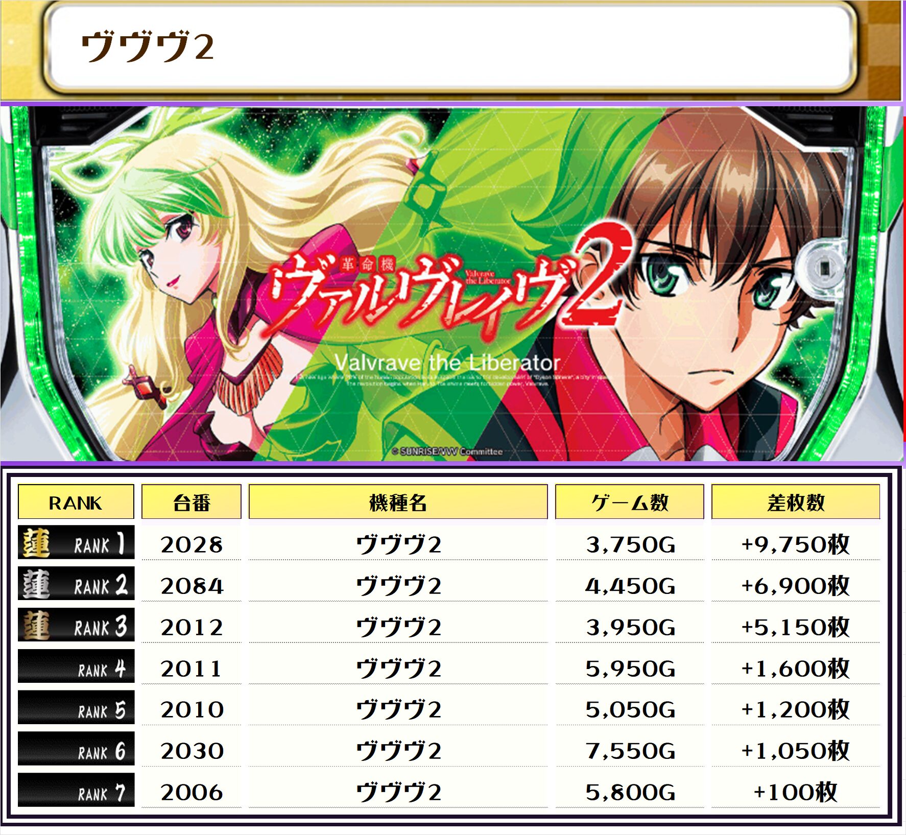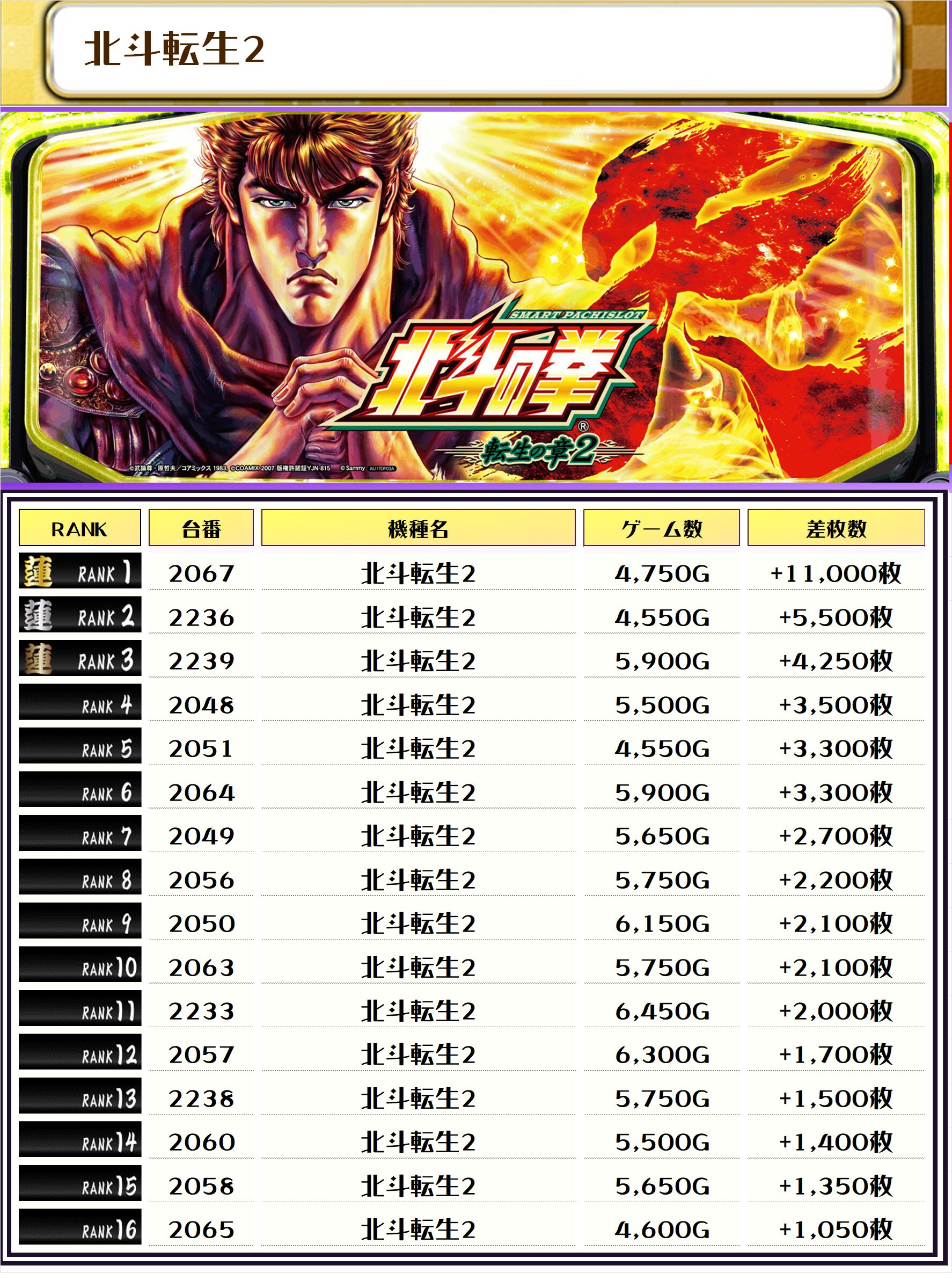 続く2位には【北斗転生2・2067番台】の+11,000枚、そして3位には【ヴヴヴ2・2028番台】の+9,750枚がランクインっ🏆🏆🏆🏆