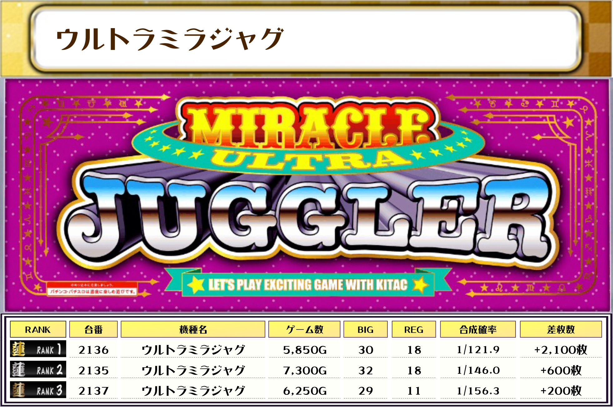 ウルトラミラジャグとLBシェイクは全台が差枚プラスでしたね〜👏👏