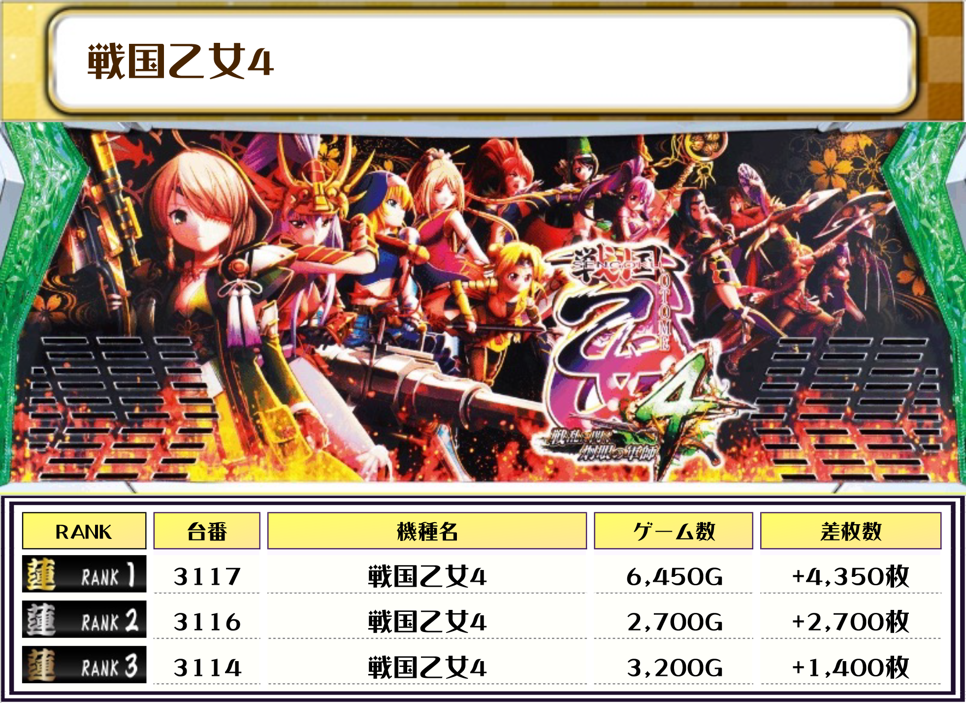それでは、この日の【機種別差枚ランキング】を見ていきましょう❗️