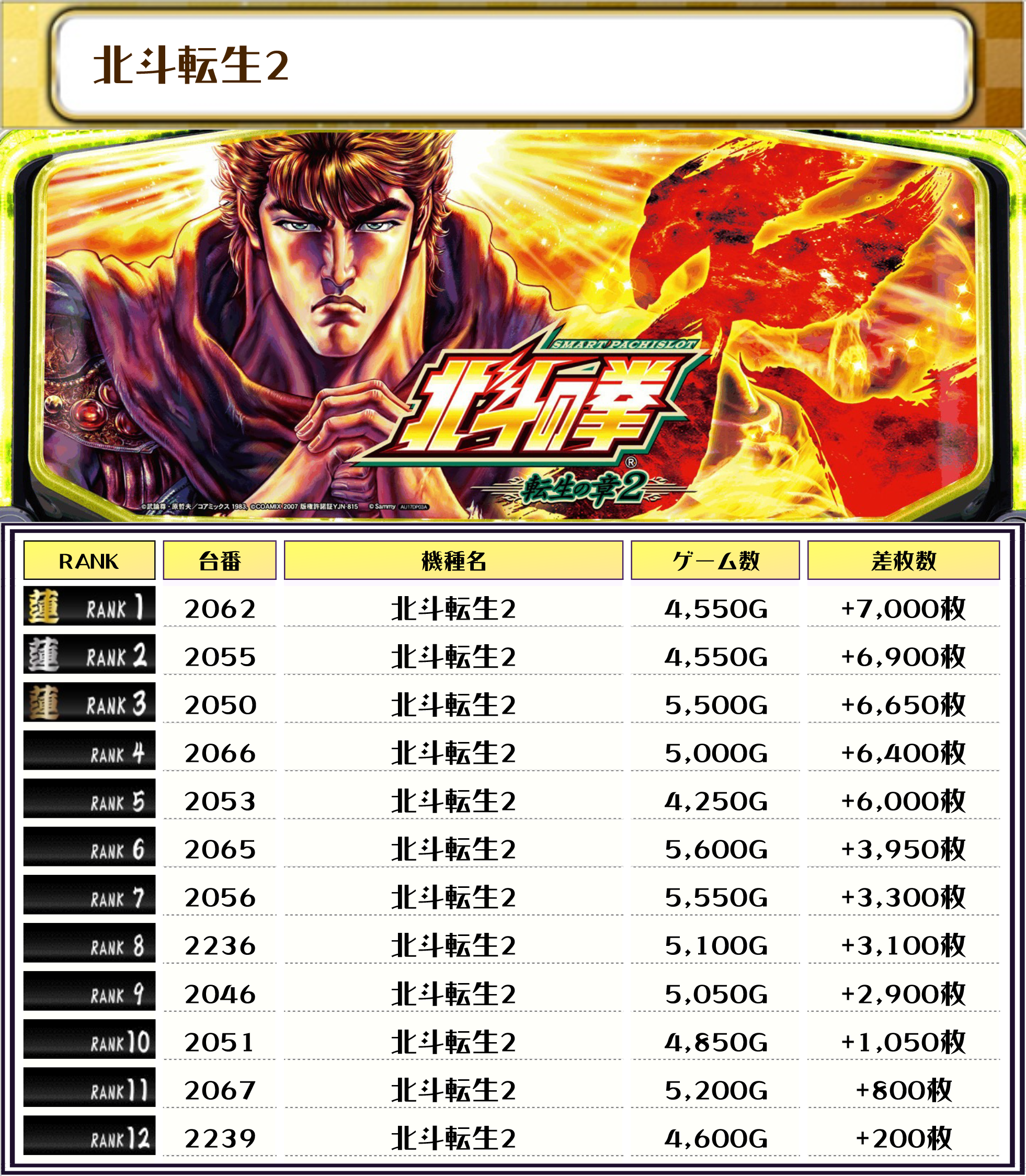 そして、全体の差枚ランキングはコチラっ📷