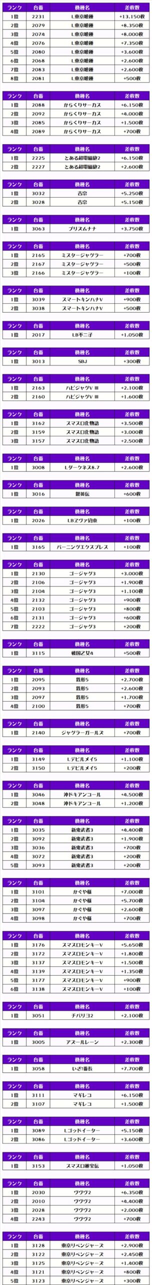 そして、全体の差枚ランキングです