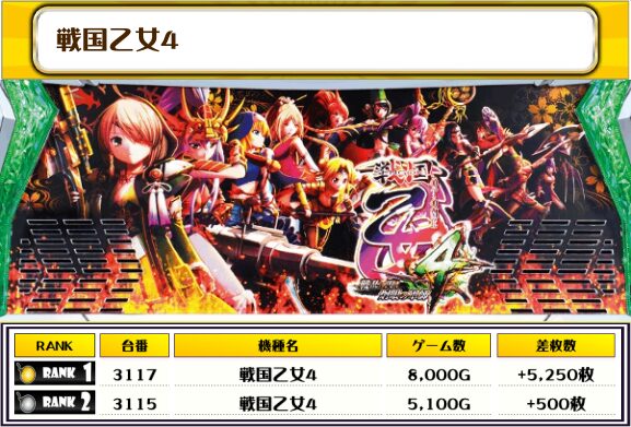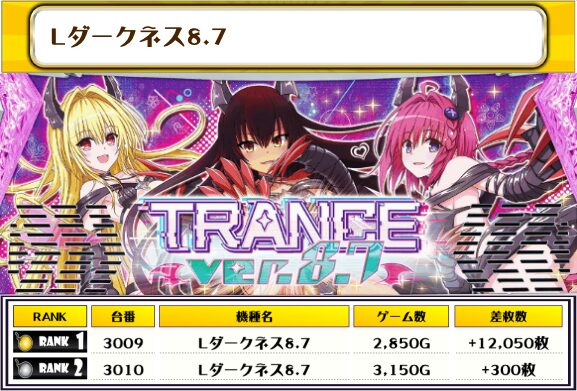 続く2位には【Lダークネス8.7・3009番台】の+12,050枚、そして3位には【新鬼武者3・3095番台】の+11,850枚がランクインっ‼️