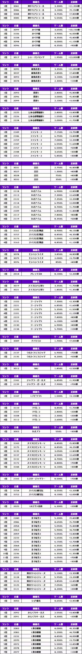 それでは、この日の【機種別差枚ランキング】を見ていきましょう❗️