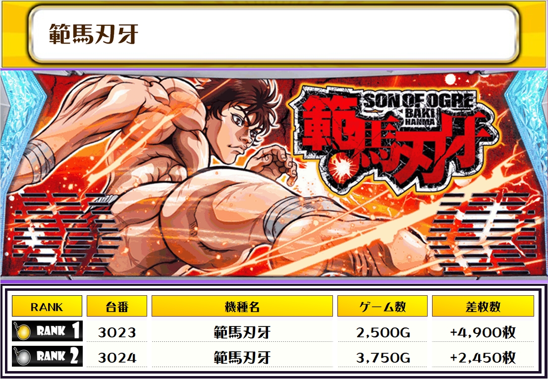 それでは、この日の【機種別差枚ランキング】を見ていきましょう❗️