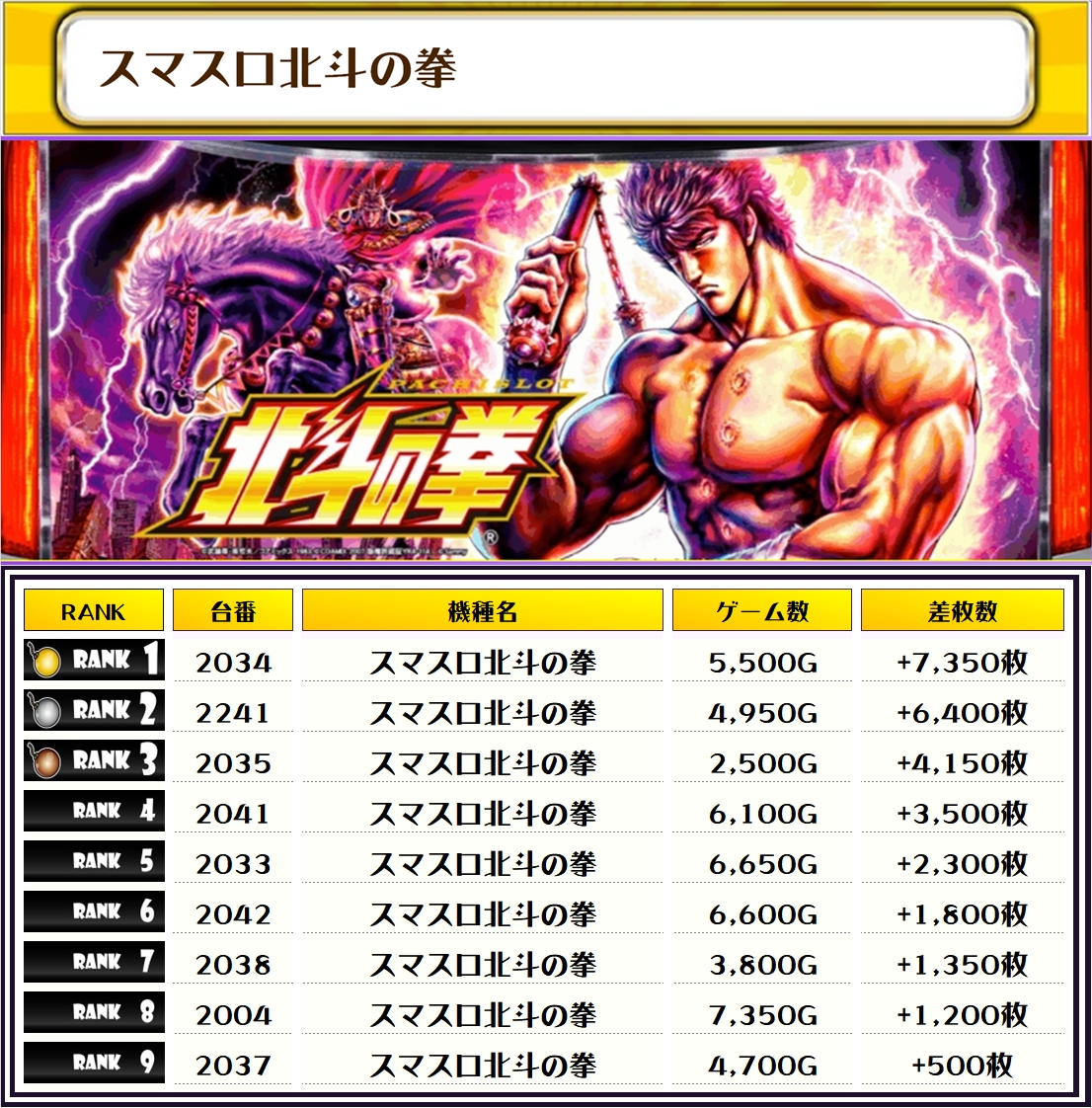 なんと北斗転生2がTOP3を独占‼️👏👏👏 こりゃまた素晴らしい結果だぜ‼️