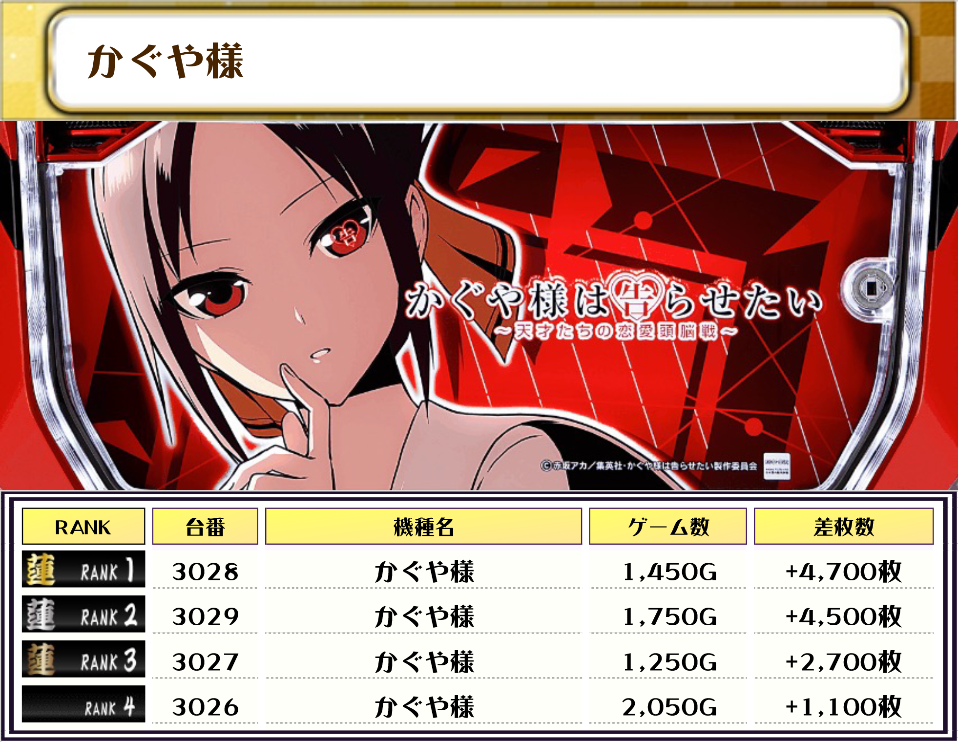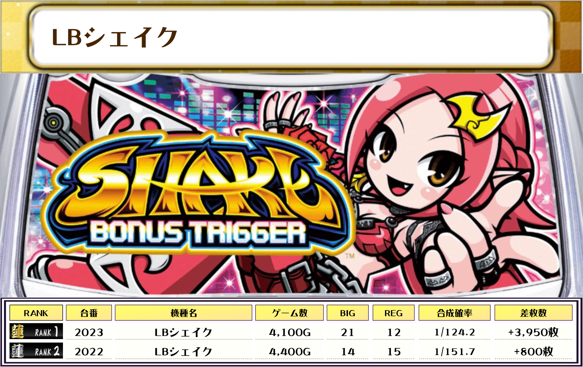 ピックアップした機種は高稼働かつ優秀台が多く見られたものですが、LBシェイク・かぐや様は全台差枚プラスでしたっ✨️✨️
