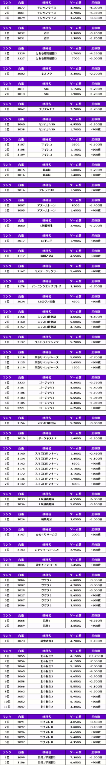それでは、この日の【機種別差枚ランキング】を見ていきましょう❗️