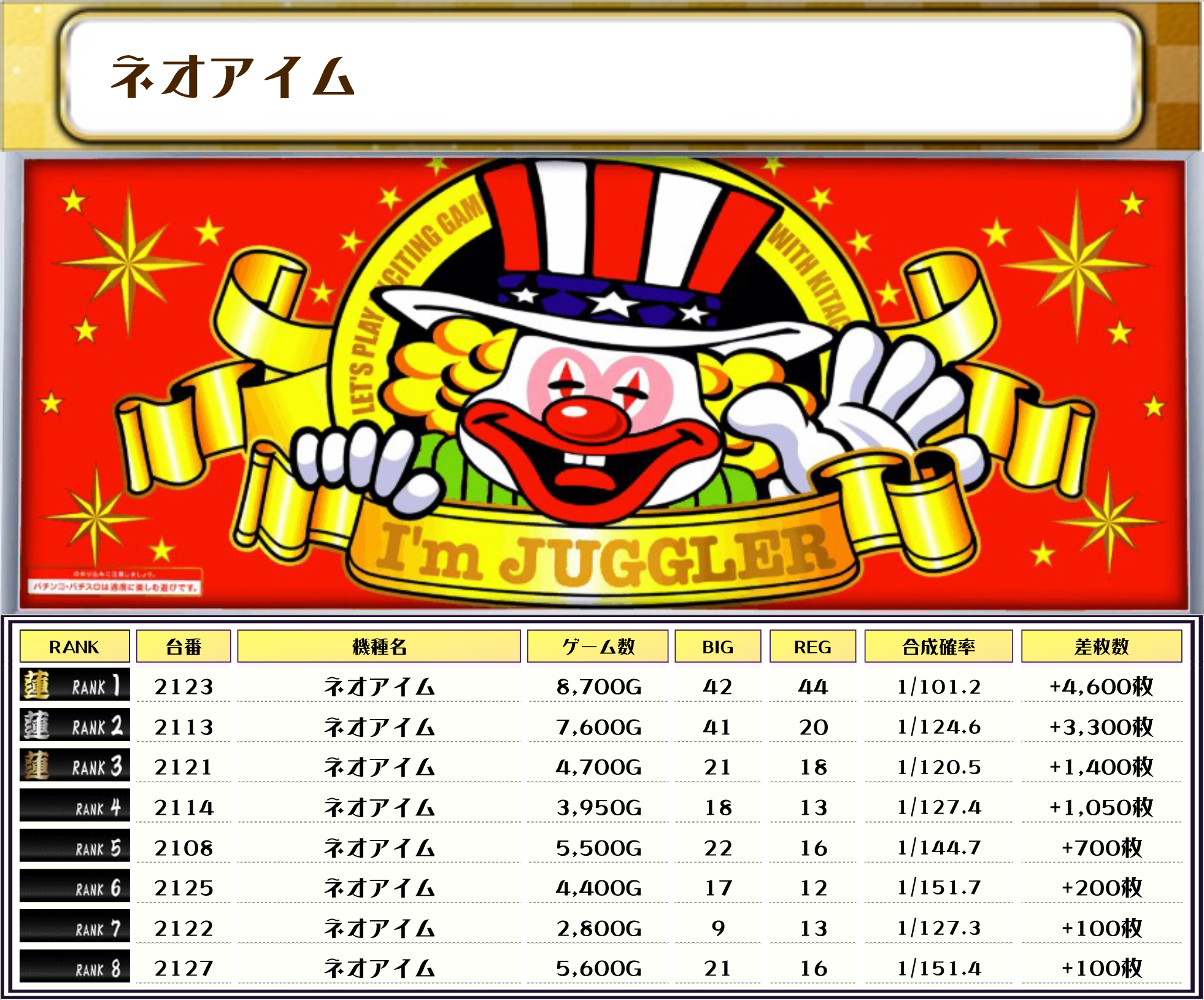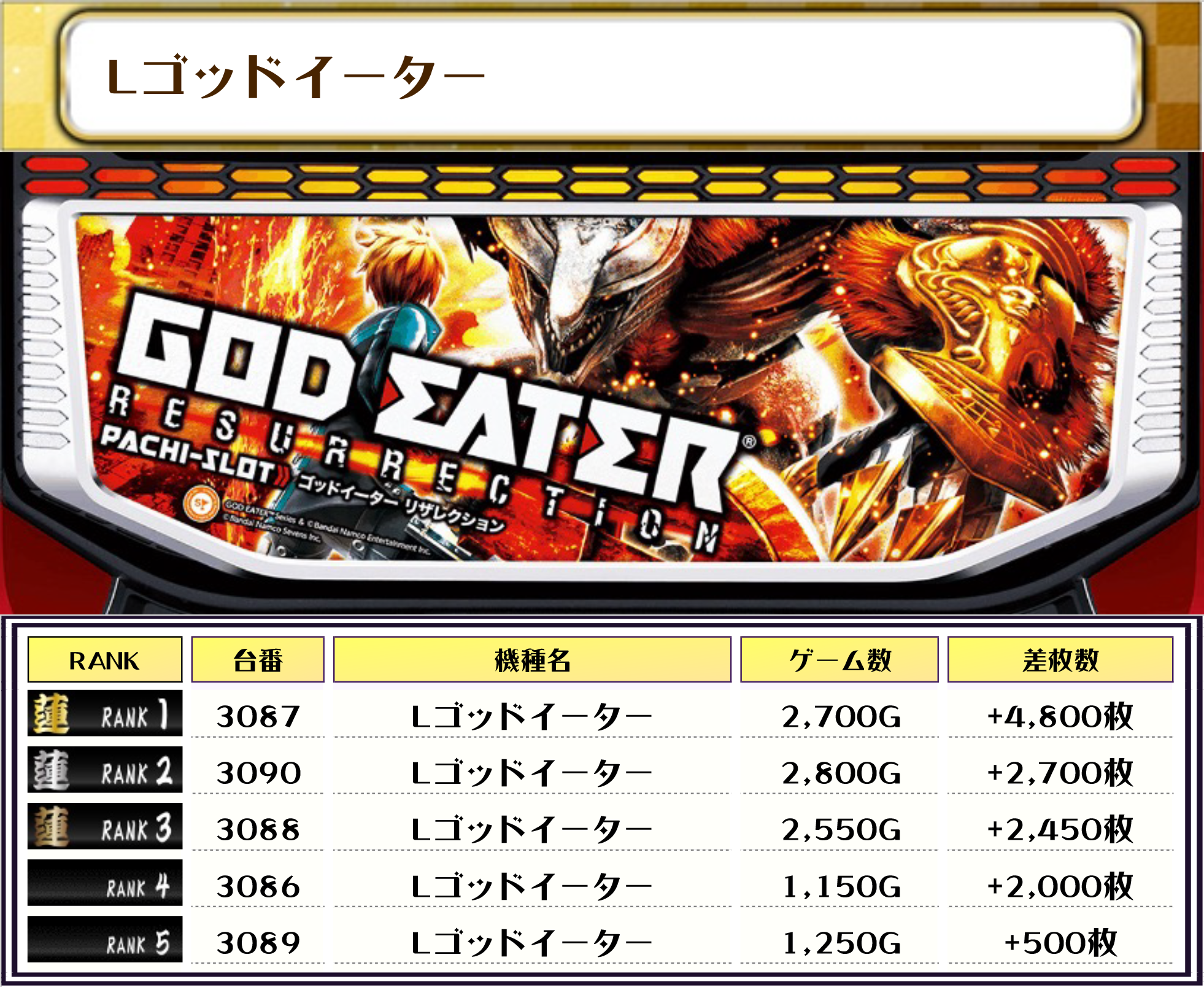 そして、全体の差枚ランキングはコチラっ📷