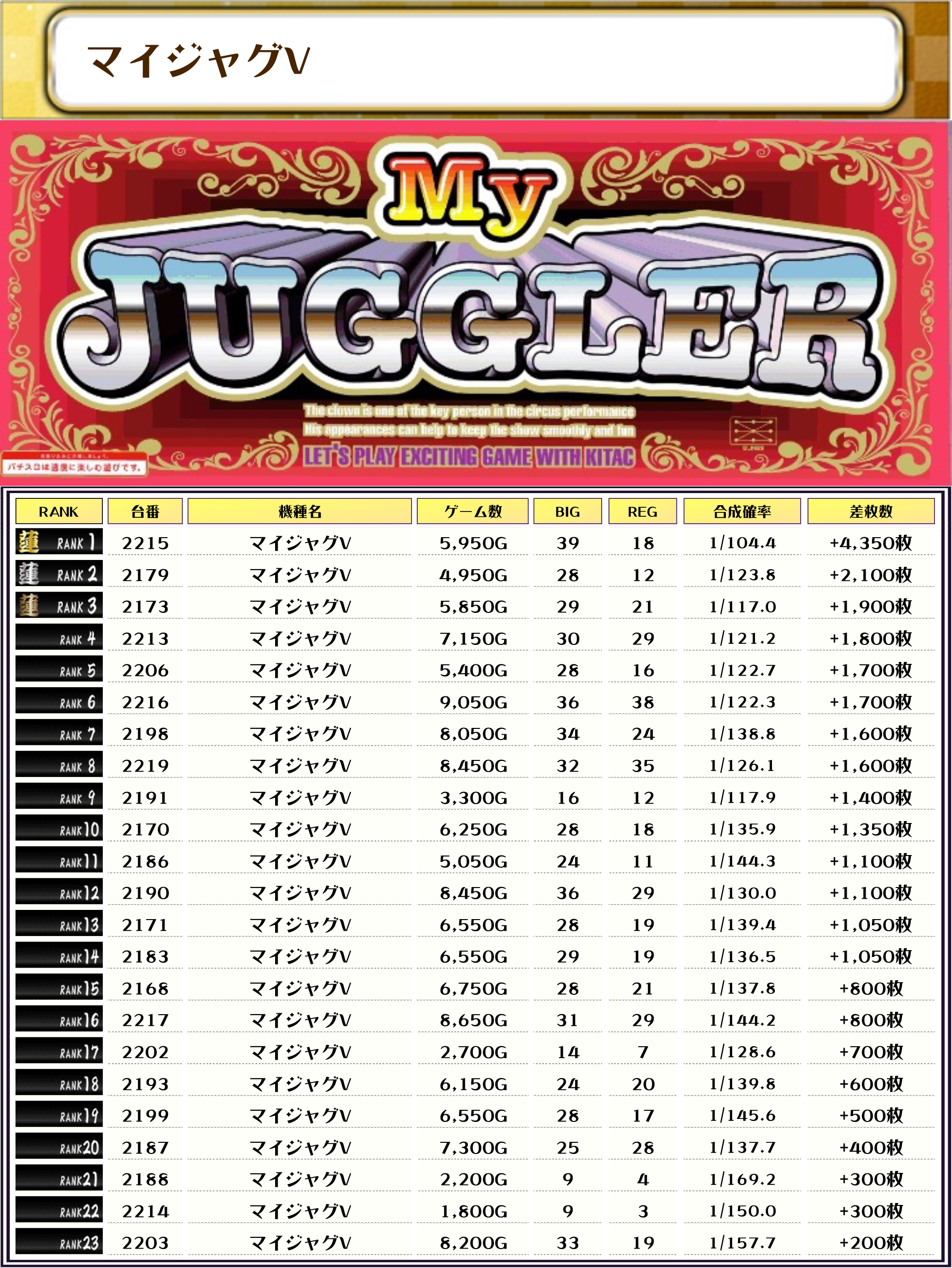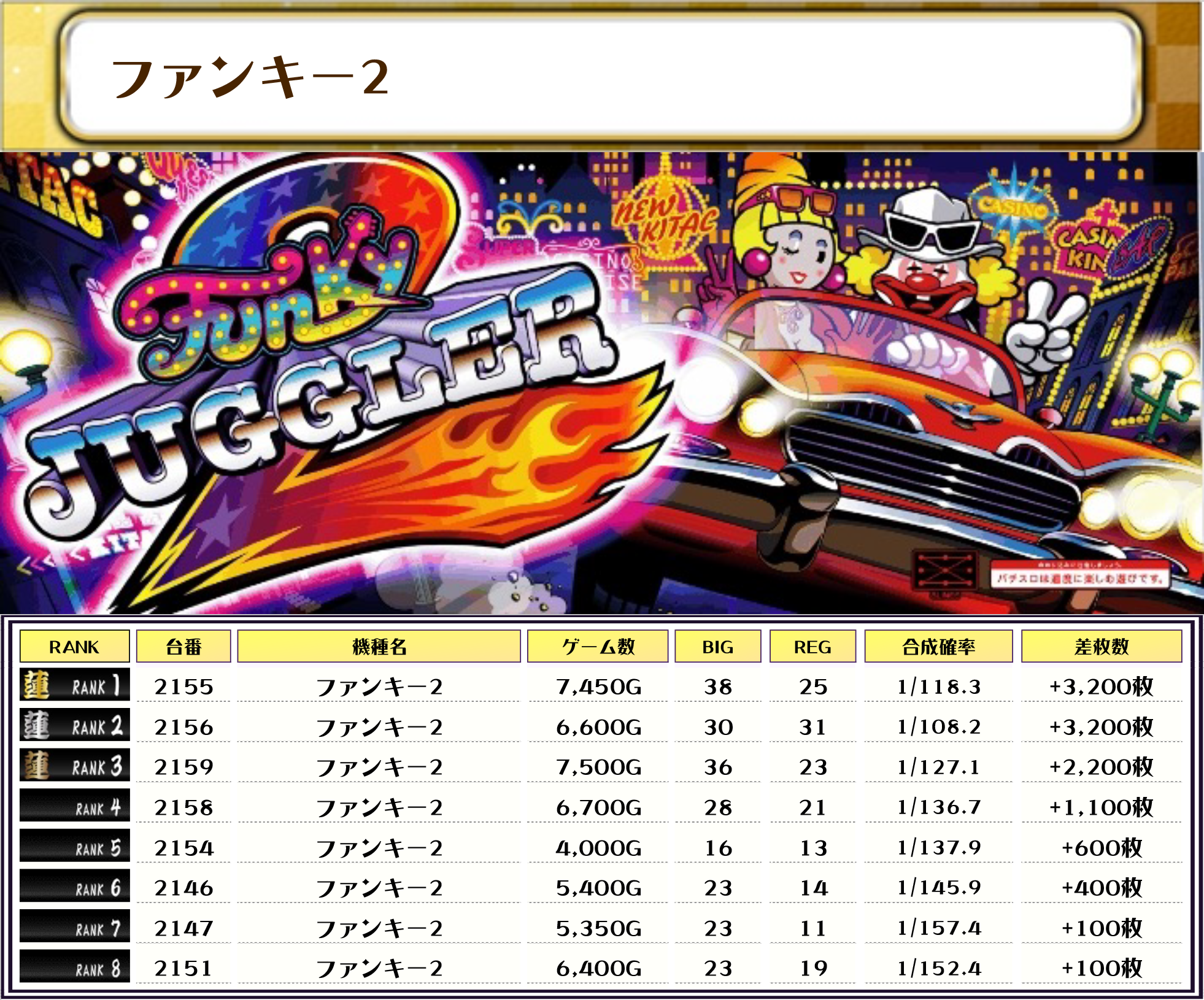 ジャグ系やBT機も今回は20位以内にランクインしていて、幅広い機種にチャンスがあったように思われますね🤔