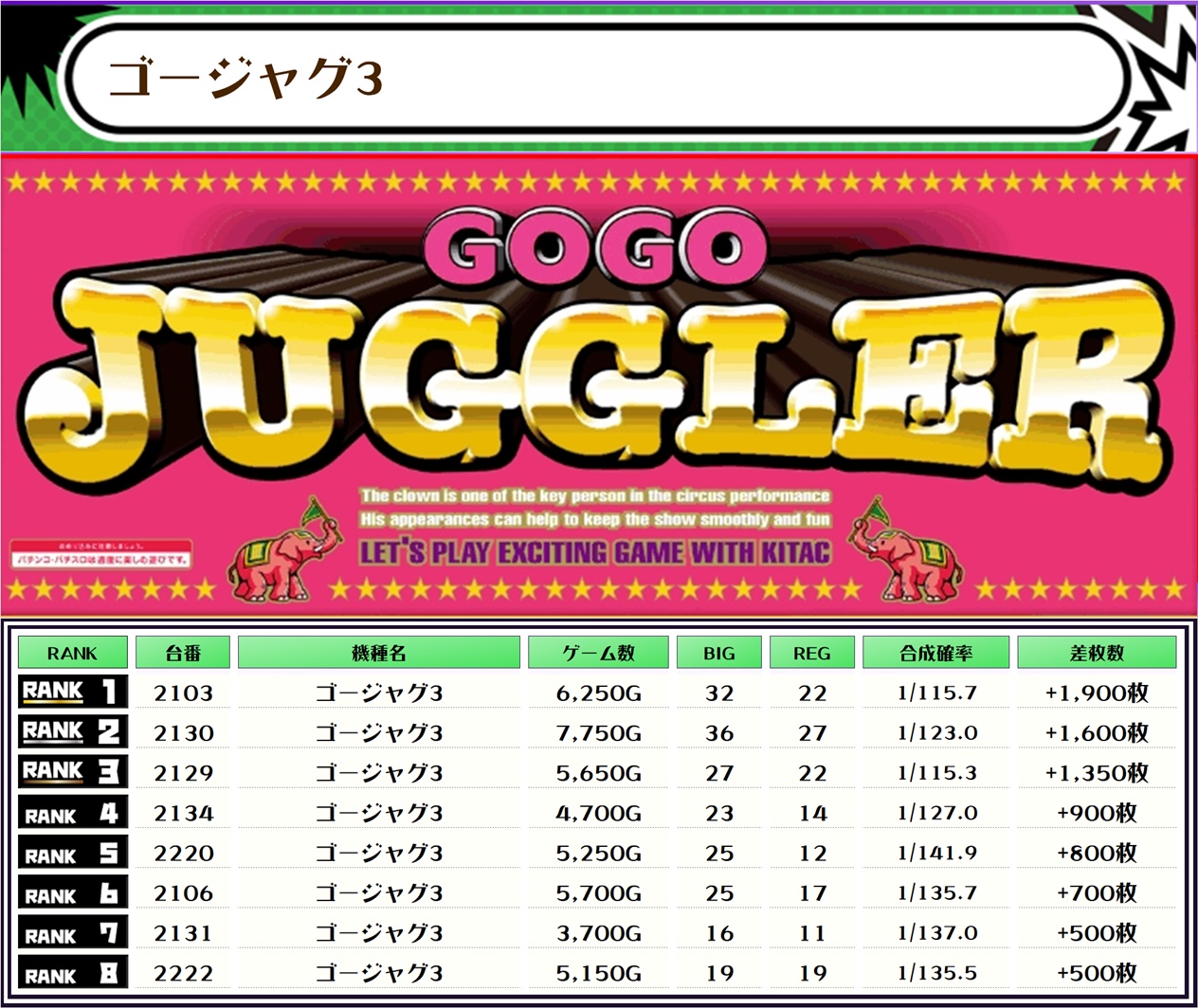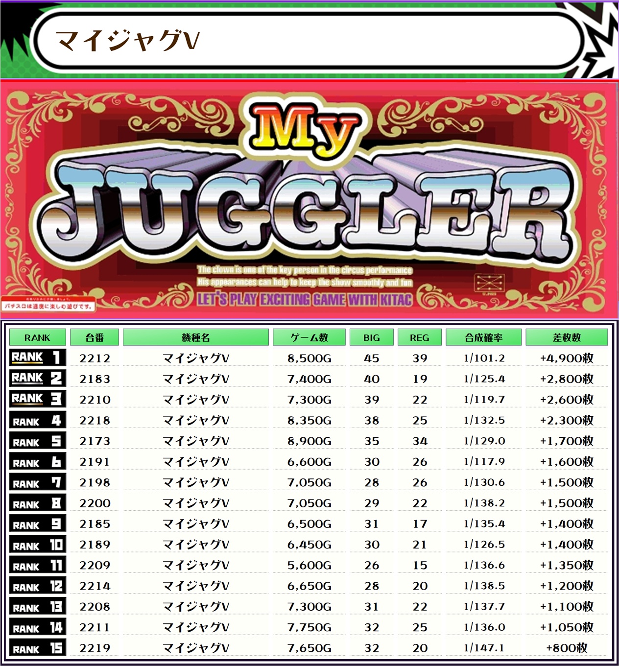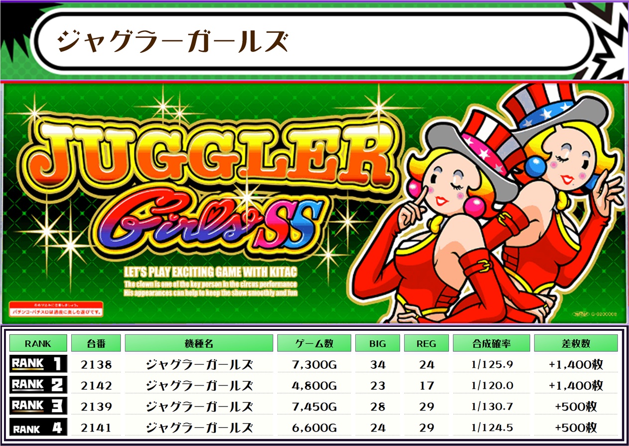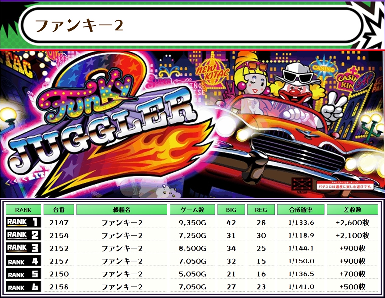 特にマイジャグV・ジャグラーガールズ・ファンキー2は勝率が高い上に、夜まで粘る方が多かったようです👀