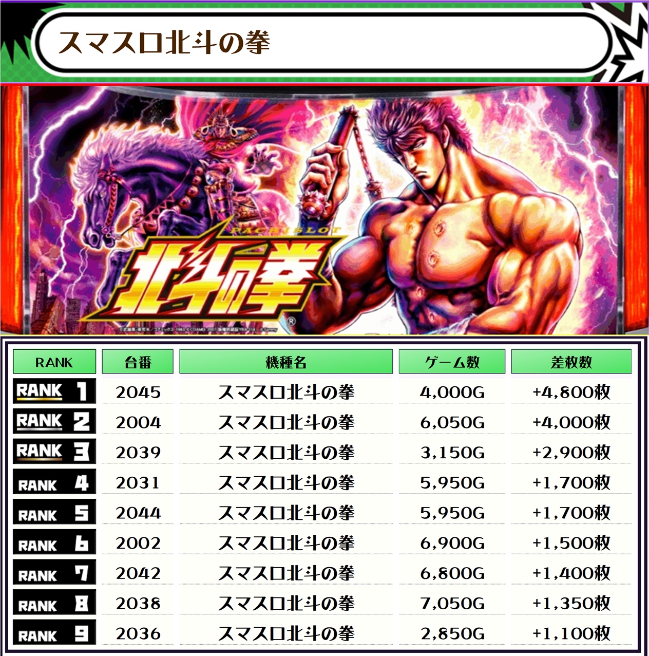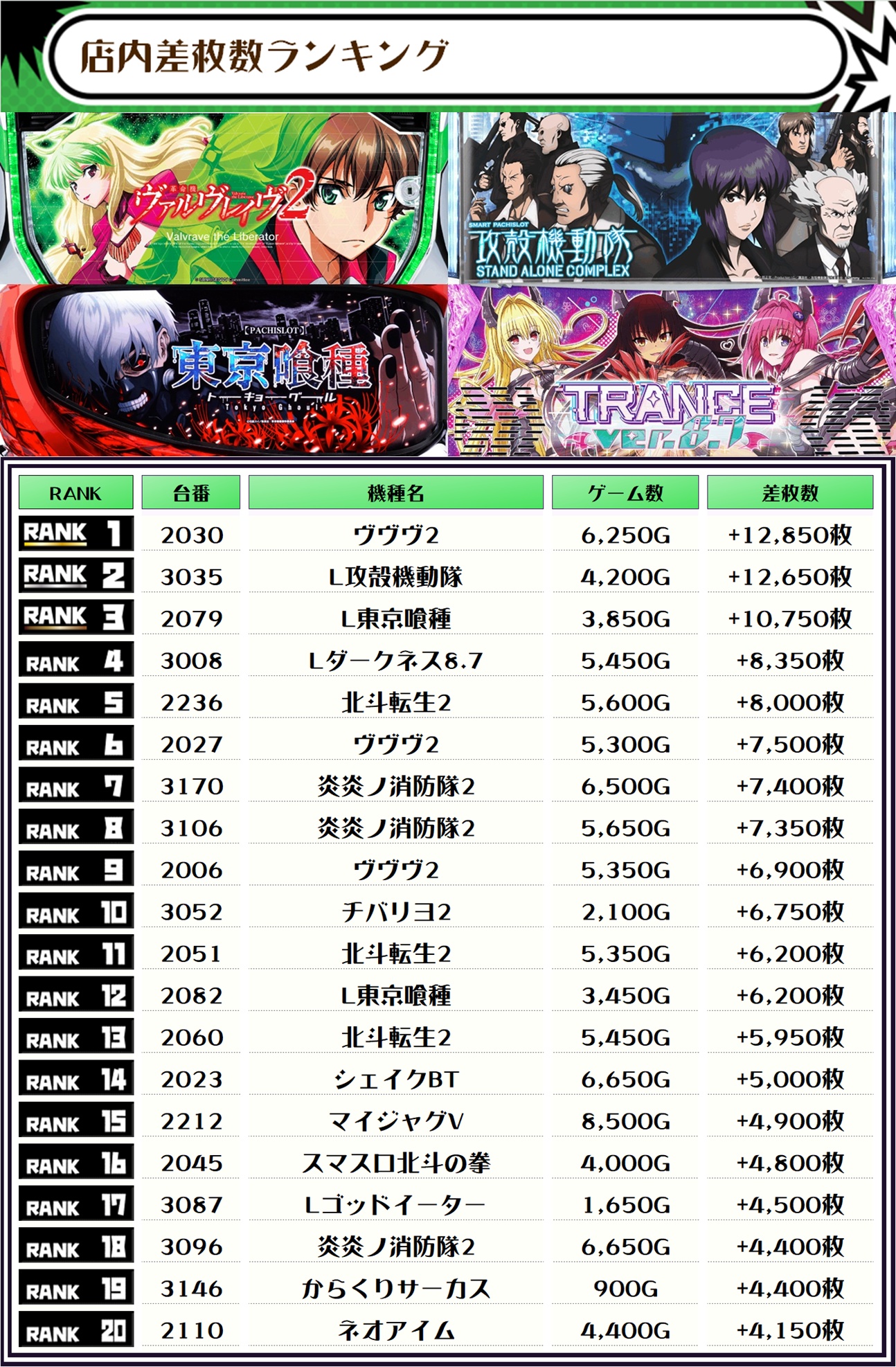 それでは、この日の【機種別差枚ランキング】を見ていくぜっ❗️