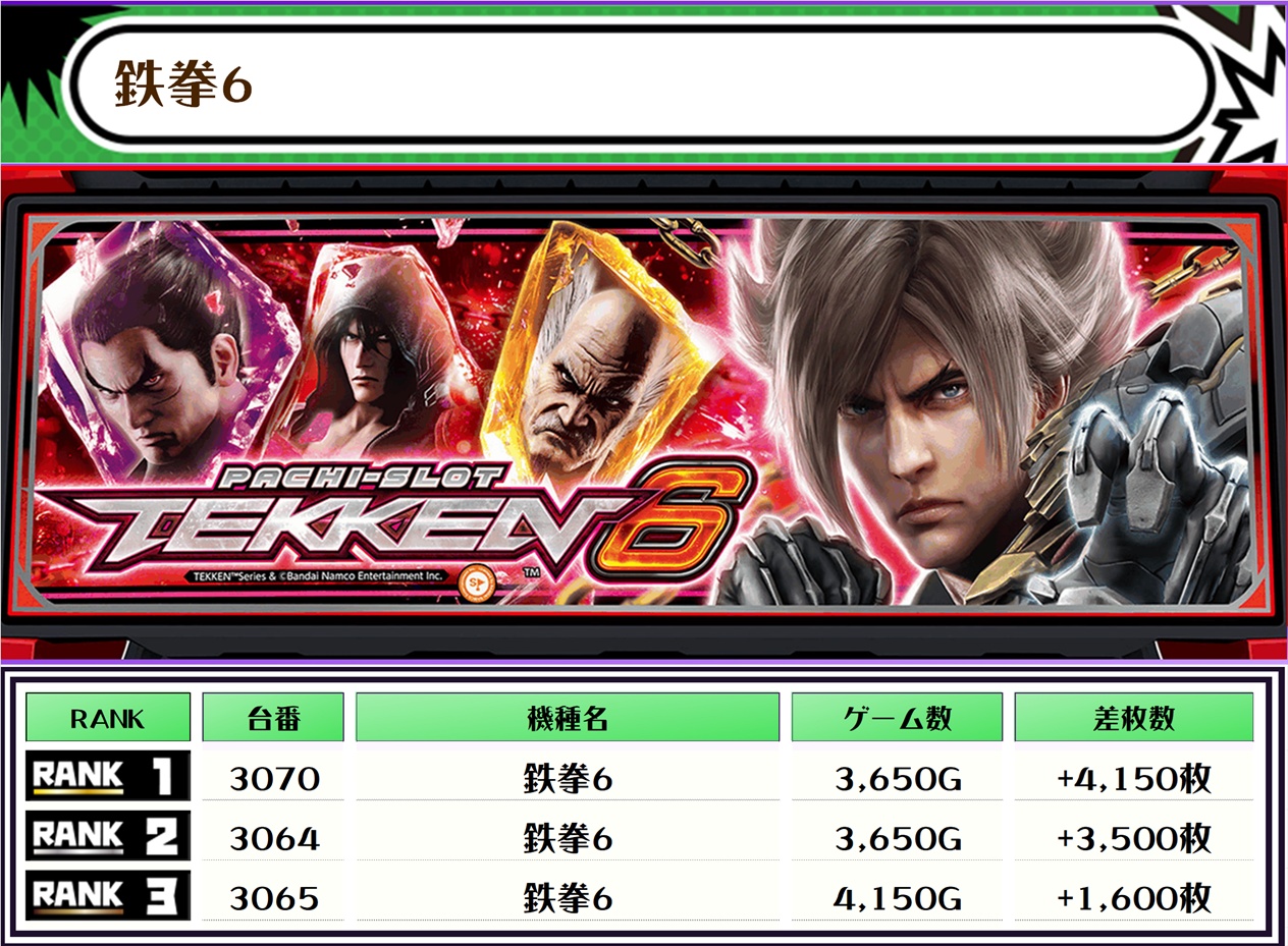 鉄拳6、スマスロ北斗、ヴヴヴ2は半数以上がプラス差枚でした✨️