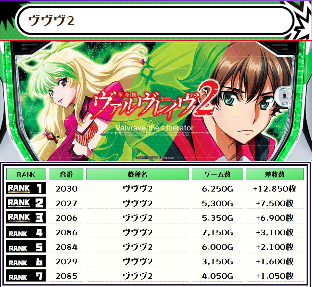 この日、全体の差枚トップに輝いたのは【ヴヴヴ2・2030番台】で+12,850枚‼️