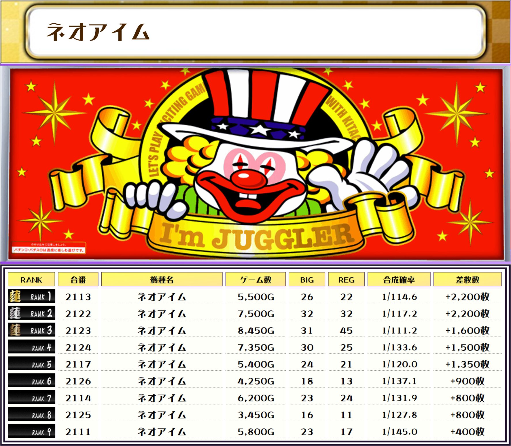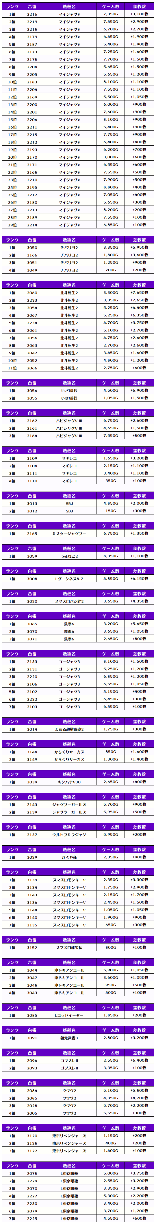 そして、全体の差枚ランキングはコチラっ📷