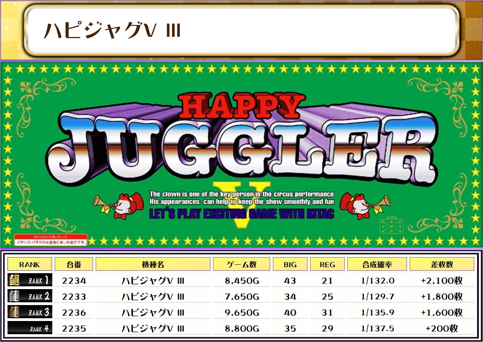 特に、ヴヴヴ2・ネオアイム・ハピジャグの3機種は半数以上がプラス差枚と目立っていましたね👀
