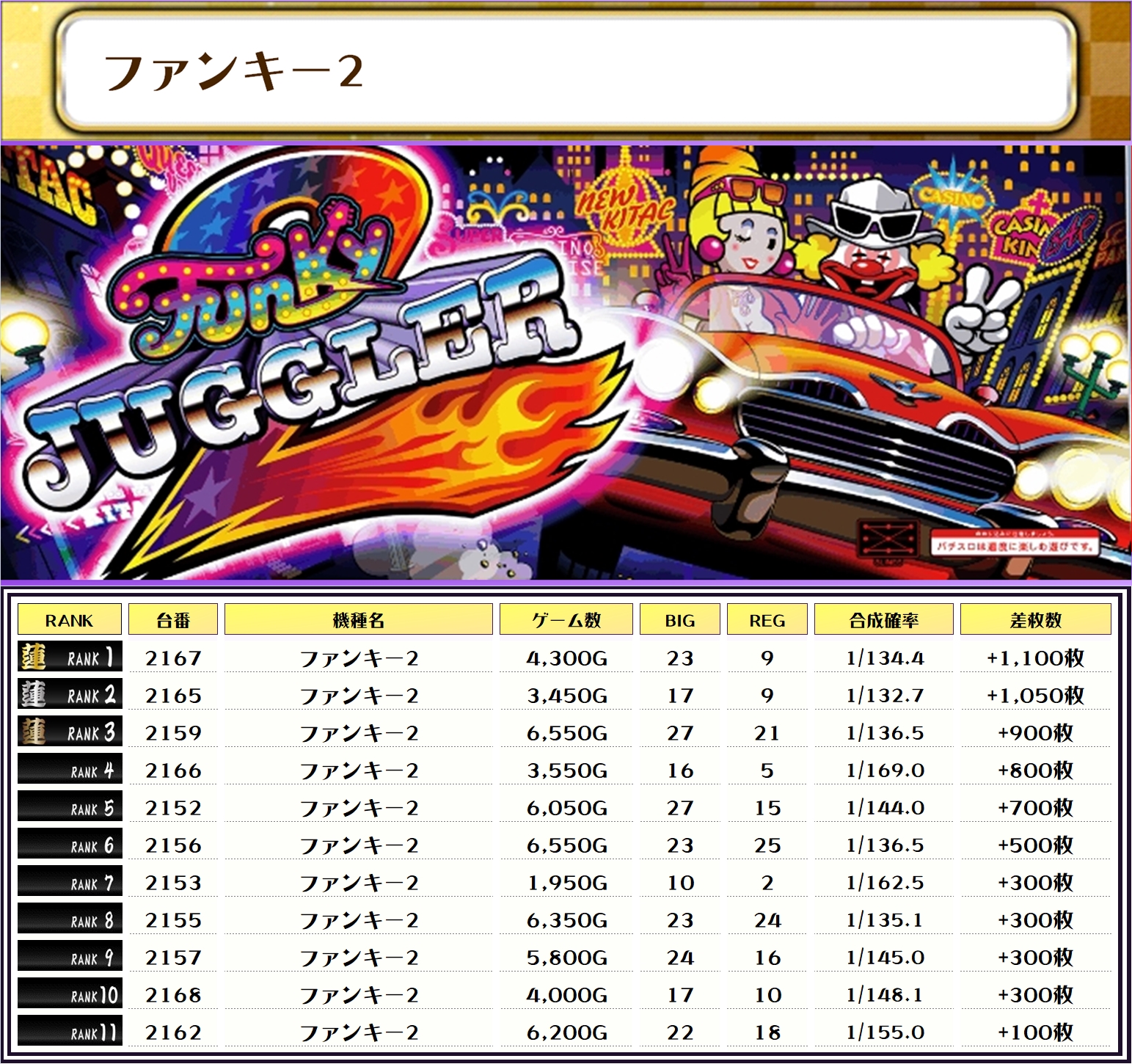 それでは、この日の【機種別差枚ランキング】を見ていきましょう❗️