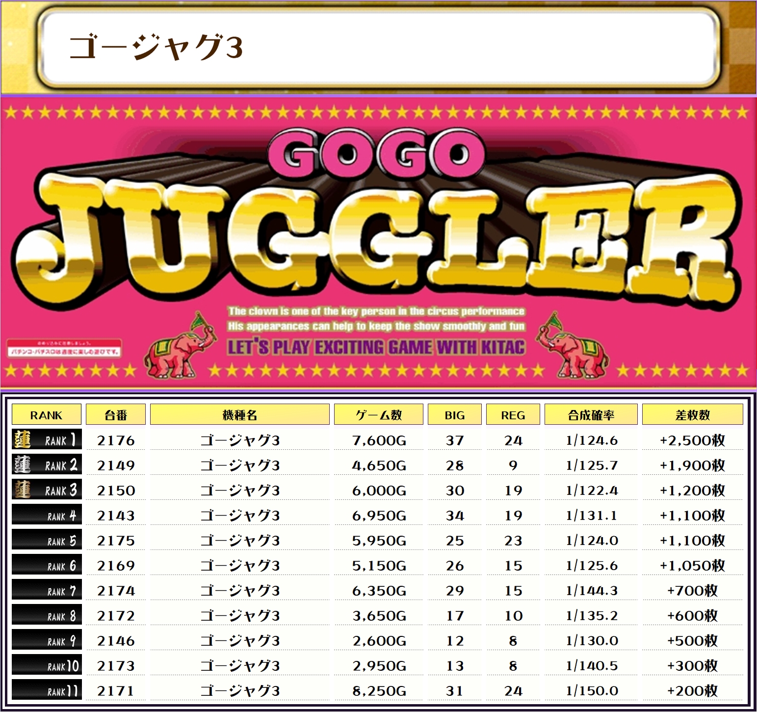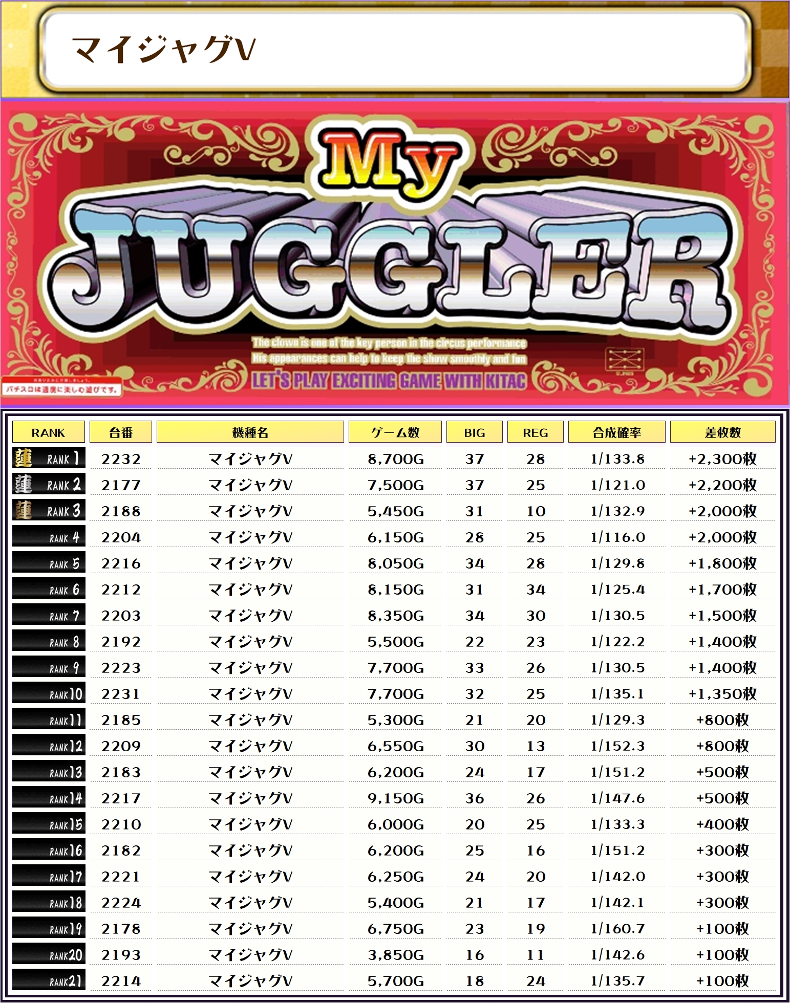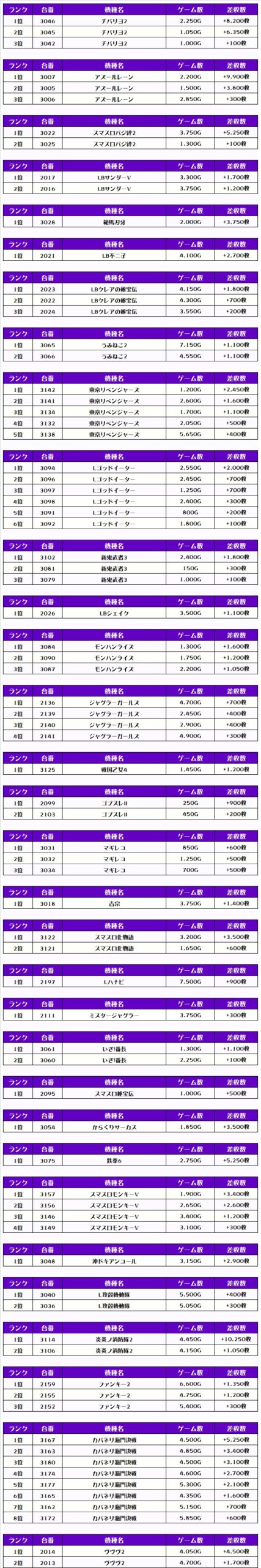 それでは、この日の【機種別差枚ランキング】を見ていきましょう❗️