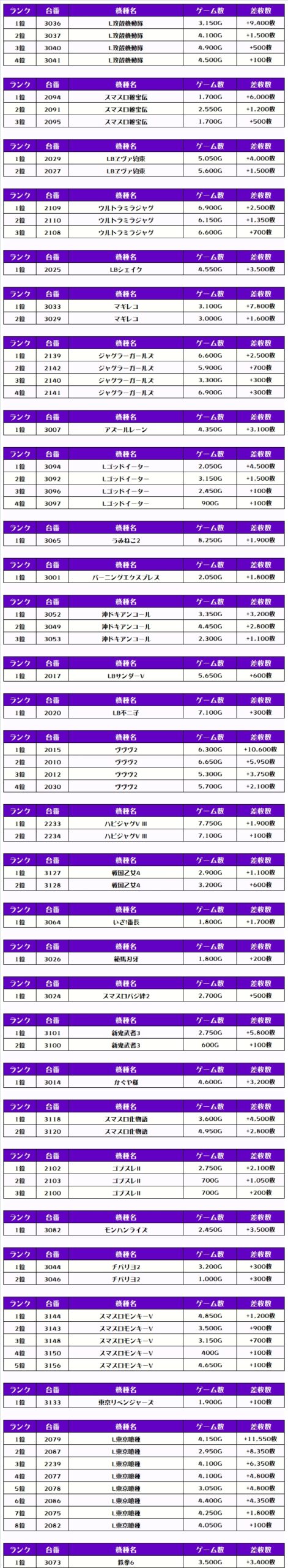 それでは、この日の【機種別差枚ランキング】を見ていきましょう❗️