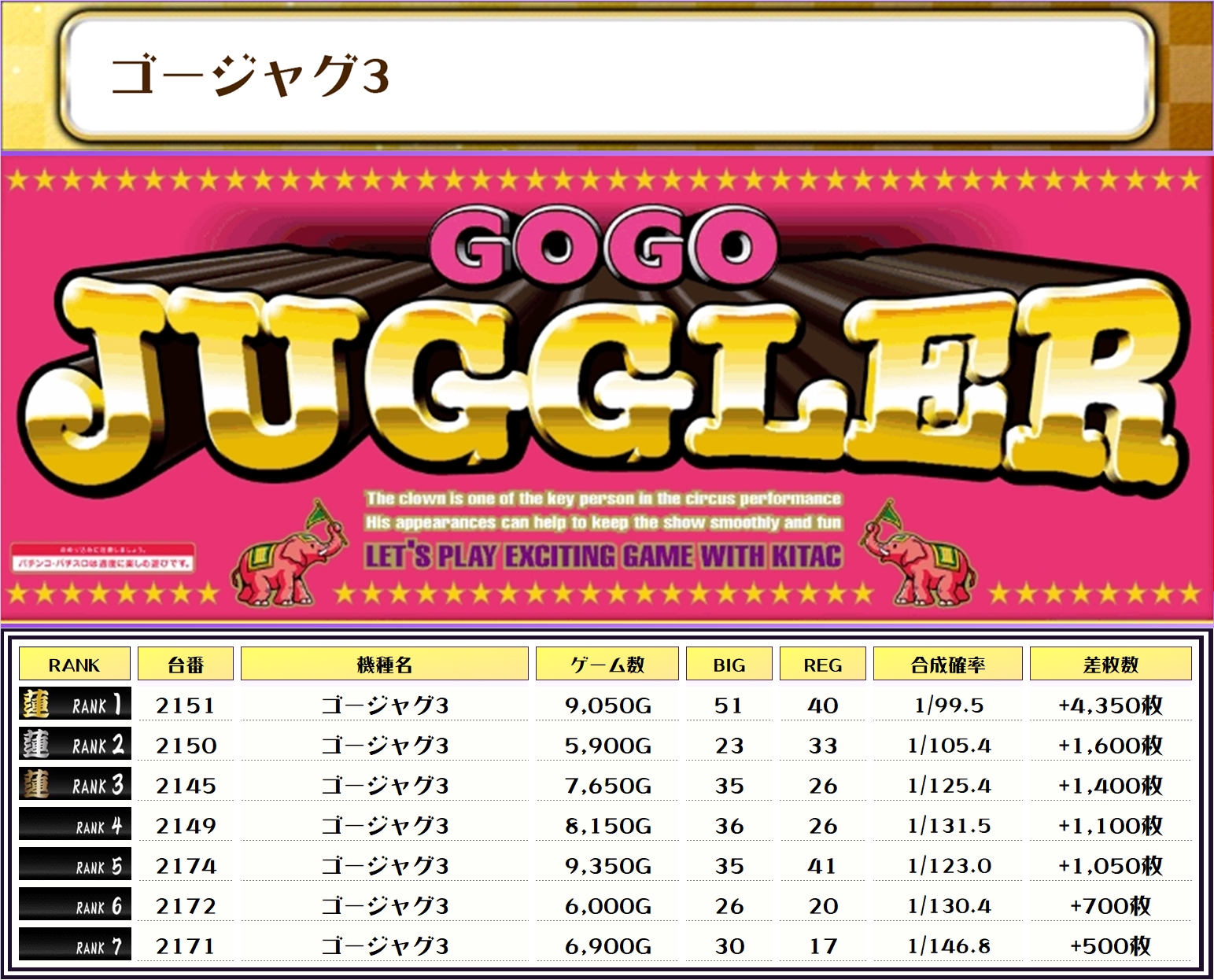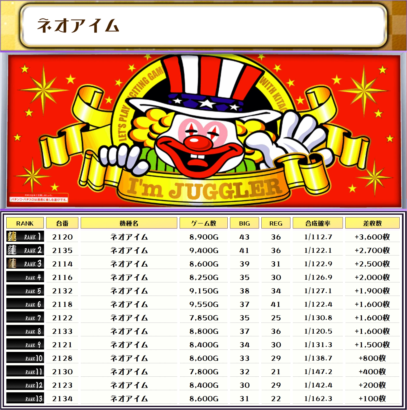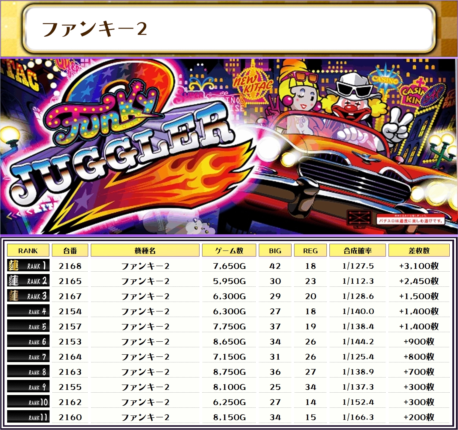 今回は万枚突破が7台も出現して、ハイレベルなランキングになりました👏👏👏👏👏👏👏