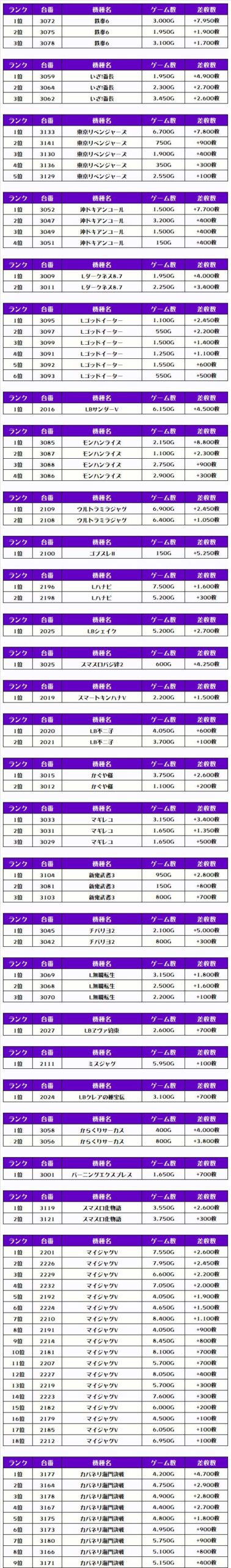 それでは、この日の【機種別差枚ランキング】を見ていきましょう❗️
