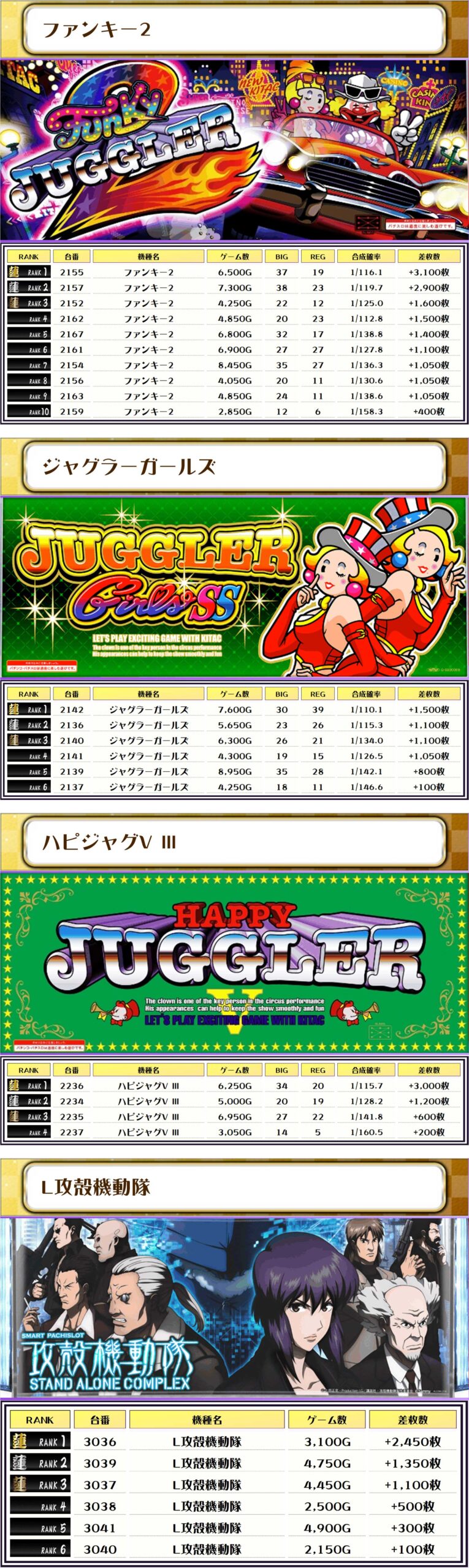 僕が注目したのは、L攻殻機動隊📝6台設置で全台プラス…ということはもしかしたら💡