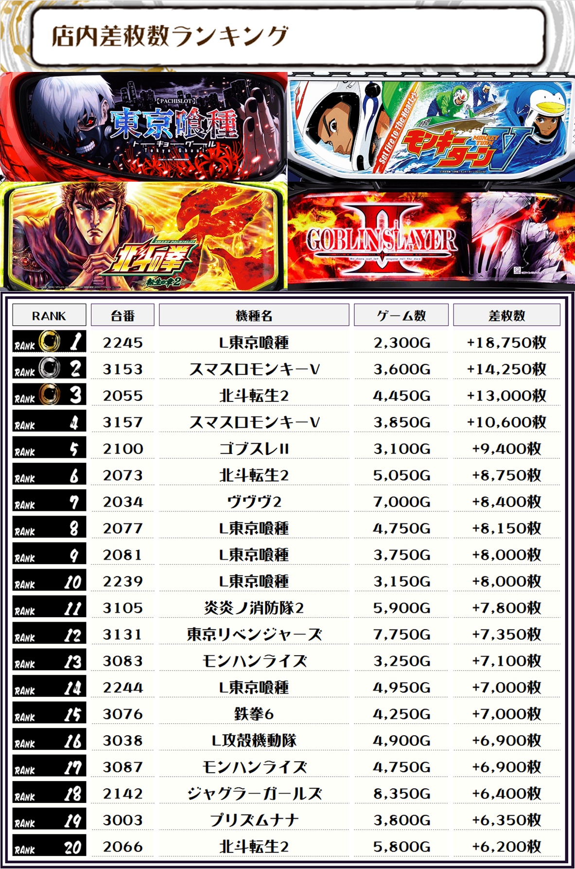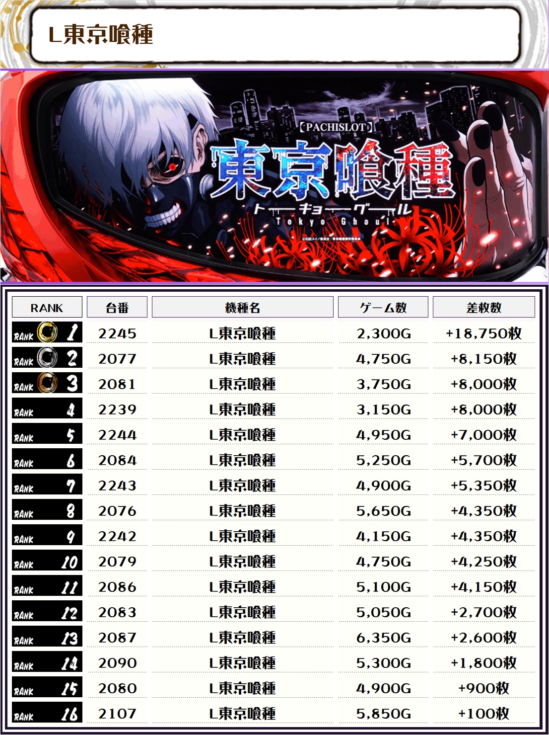 万枚超えは1台のL東京喰種ですが、5台ランクインはすごかったです🔥